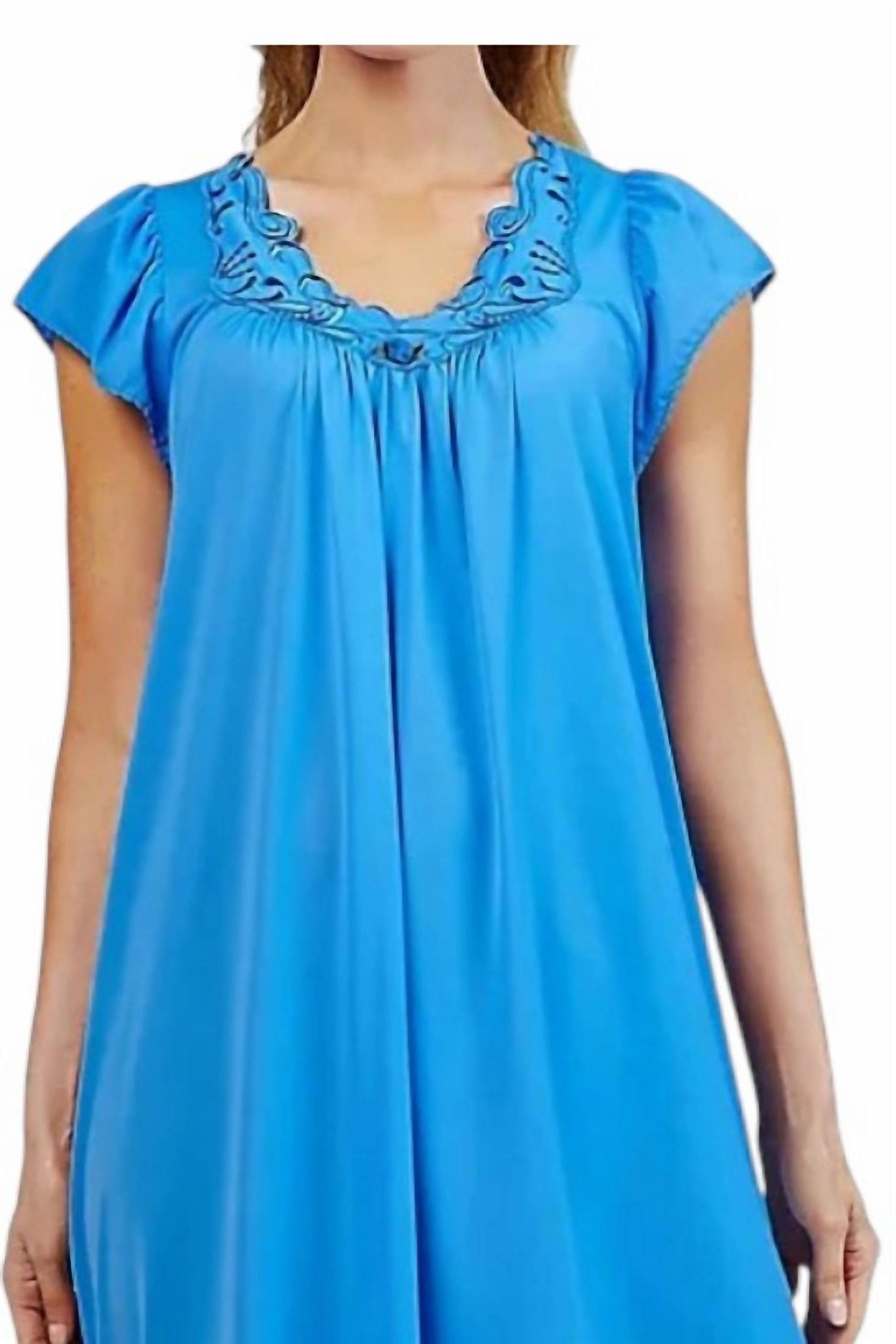 как выглядит Shadowline Lingerie Rosebud Long Cap Sleeve Nightgown Sapphire фото