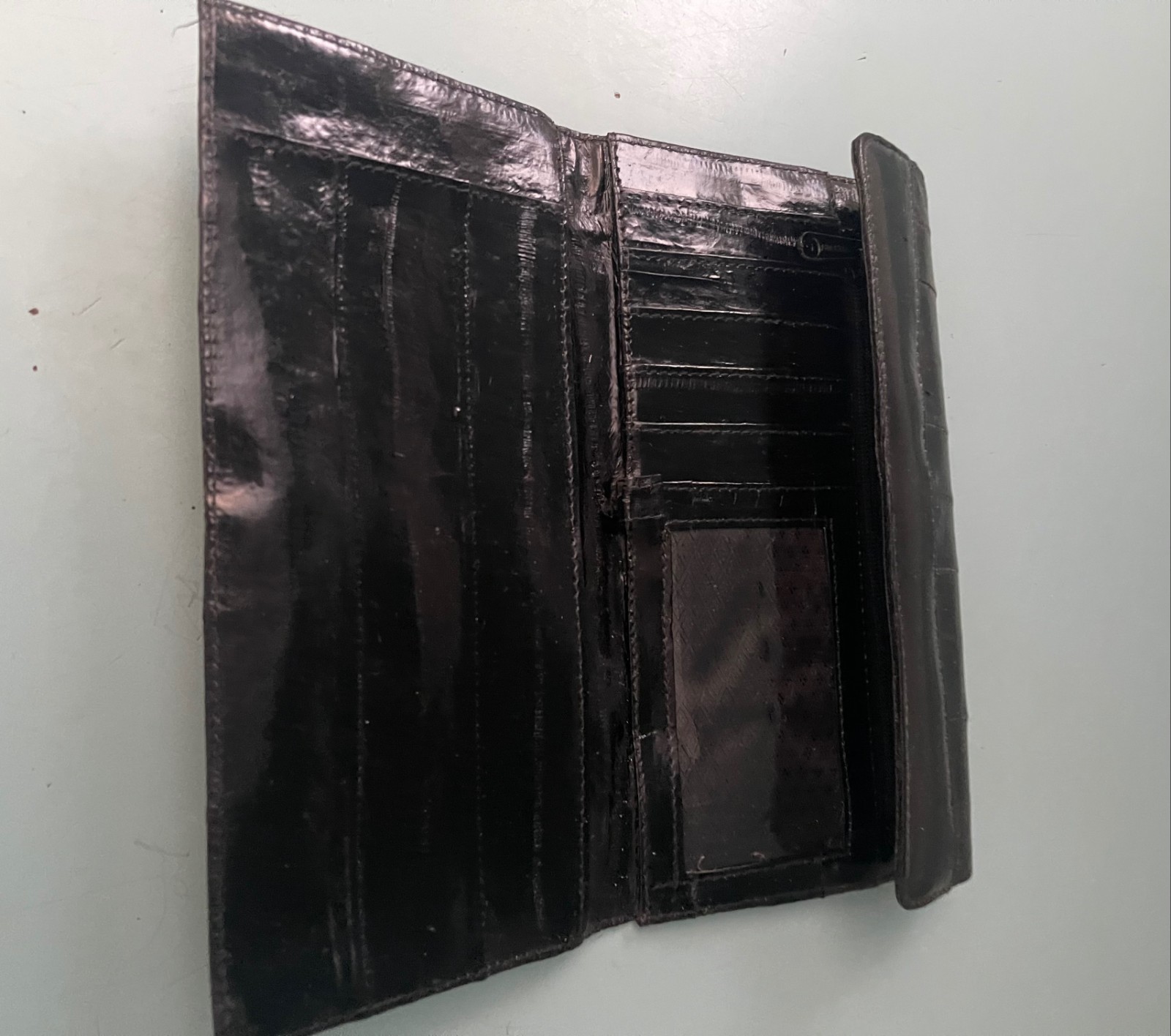 BLACK EEL Leather Trifold Wallet with Removable Checkbook Holder NWOT NICE