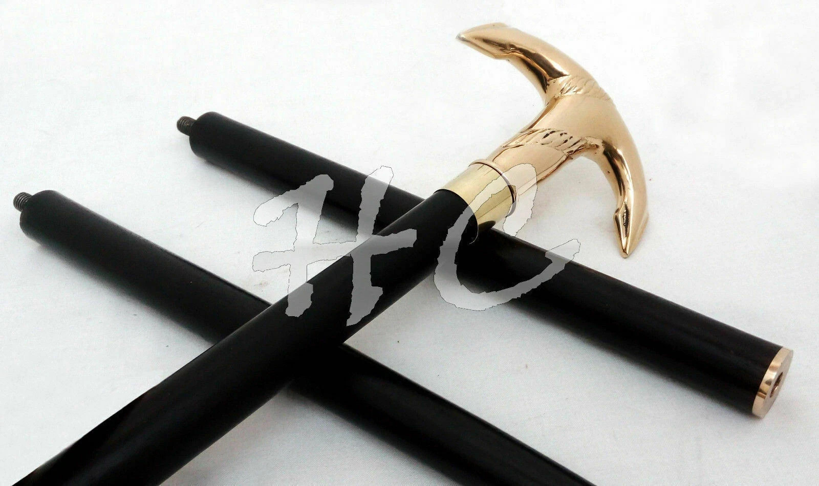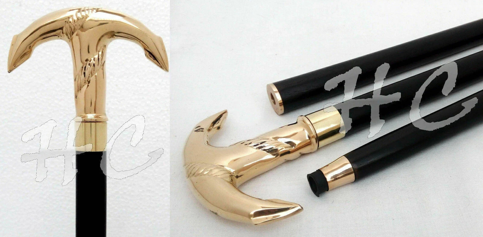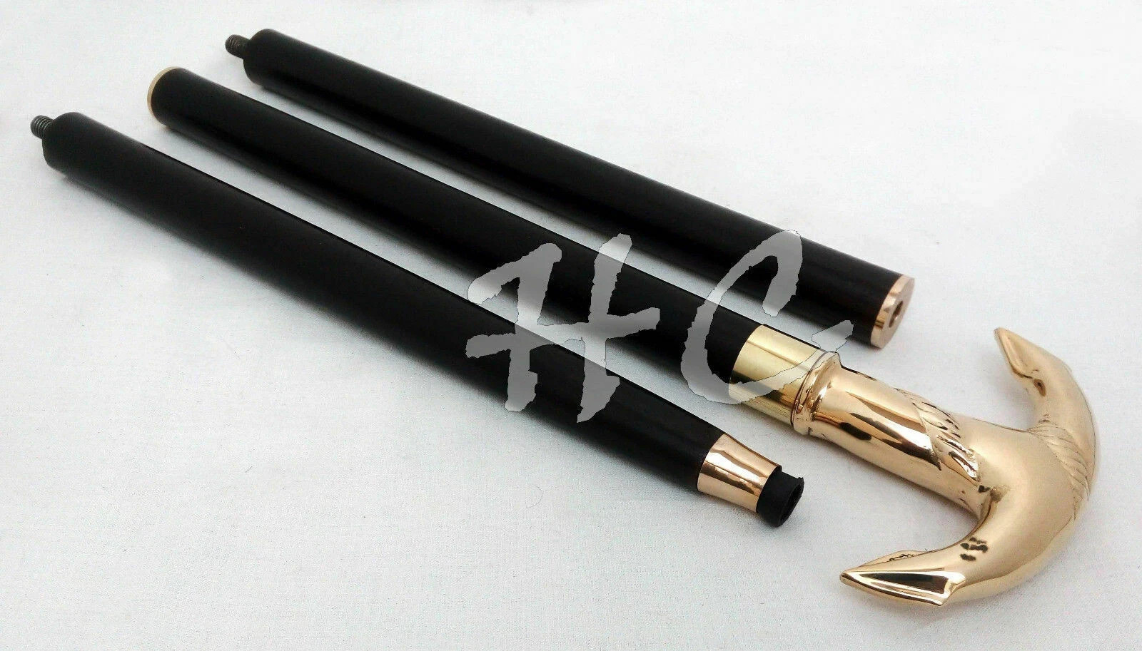 36'' Vintage Designer Brass Handle Antique Victorian Cane Wooden Walking Stick
