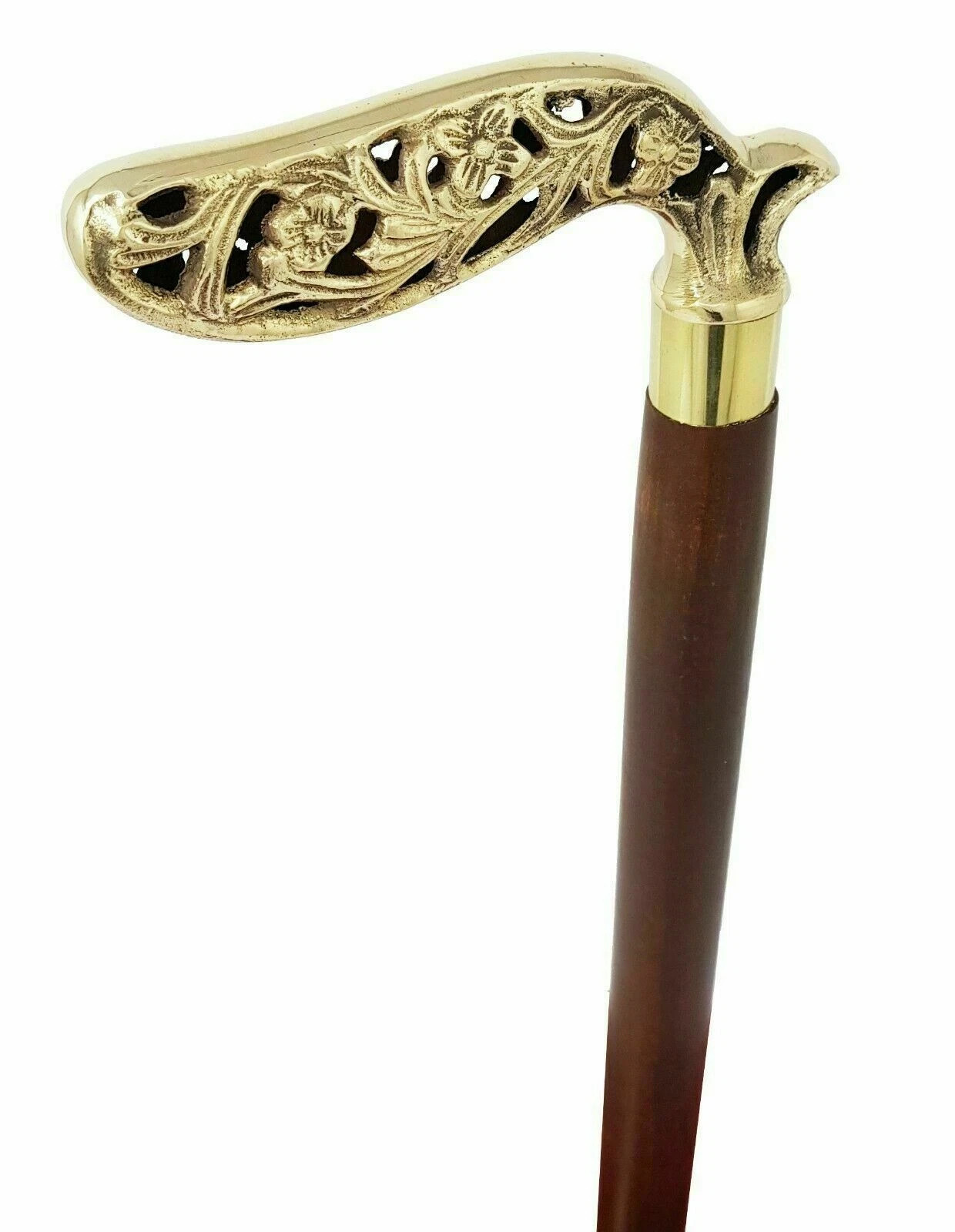 36'' Antique Vintage Brass Designer Head Handle Wooden Walking Stick Cane