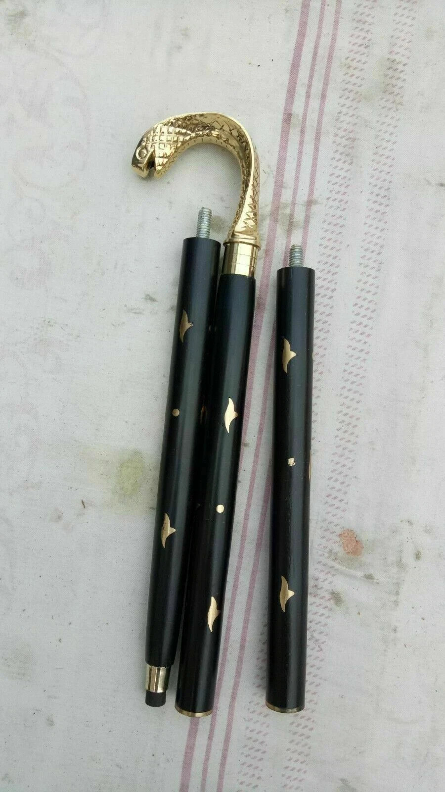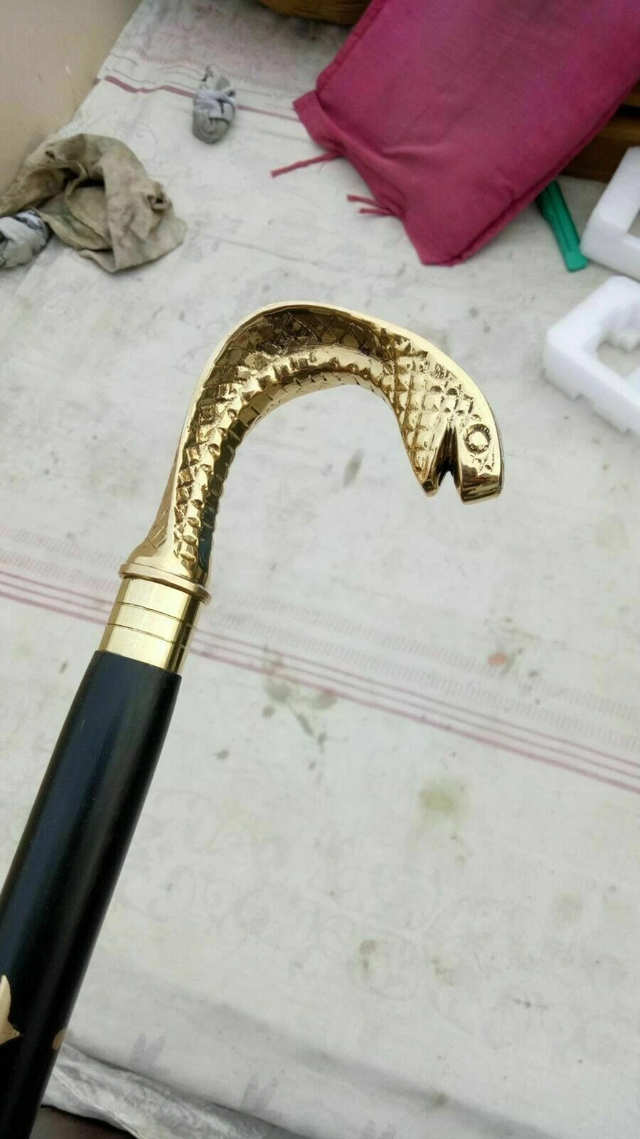 36'' Victorian Cobra Brass Handle Vintage Style Wooden Walking Stick Cane Gift