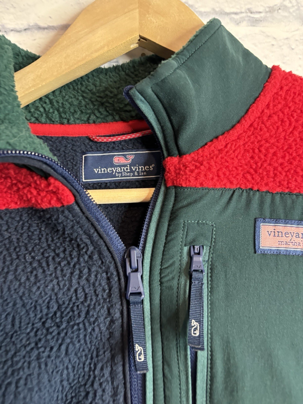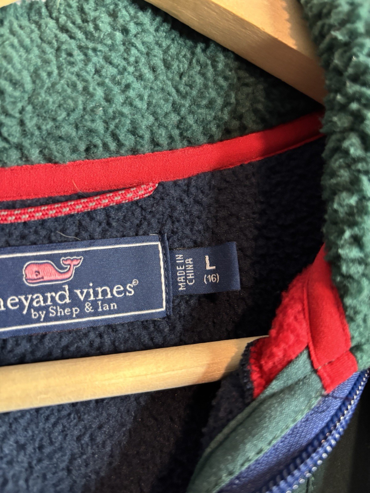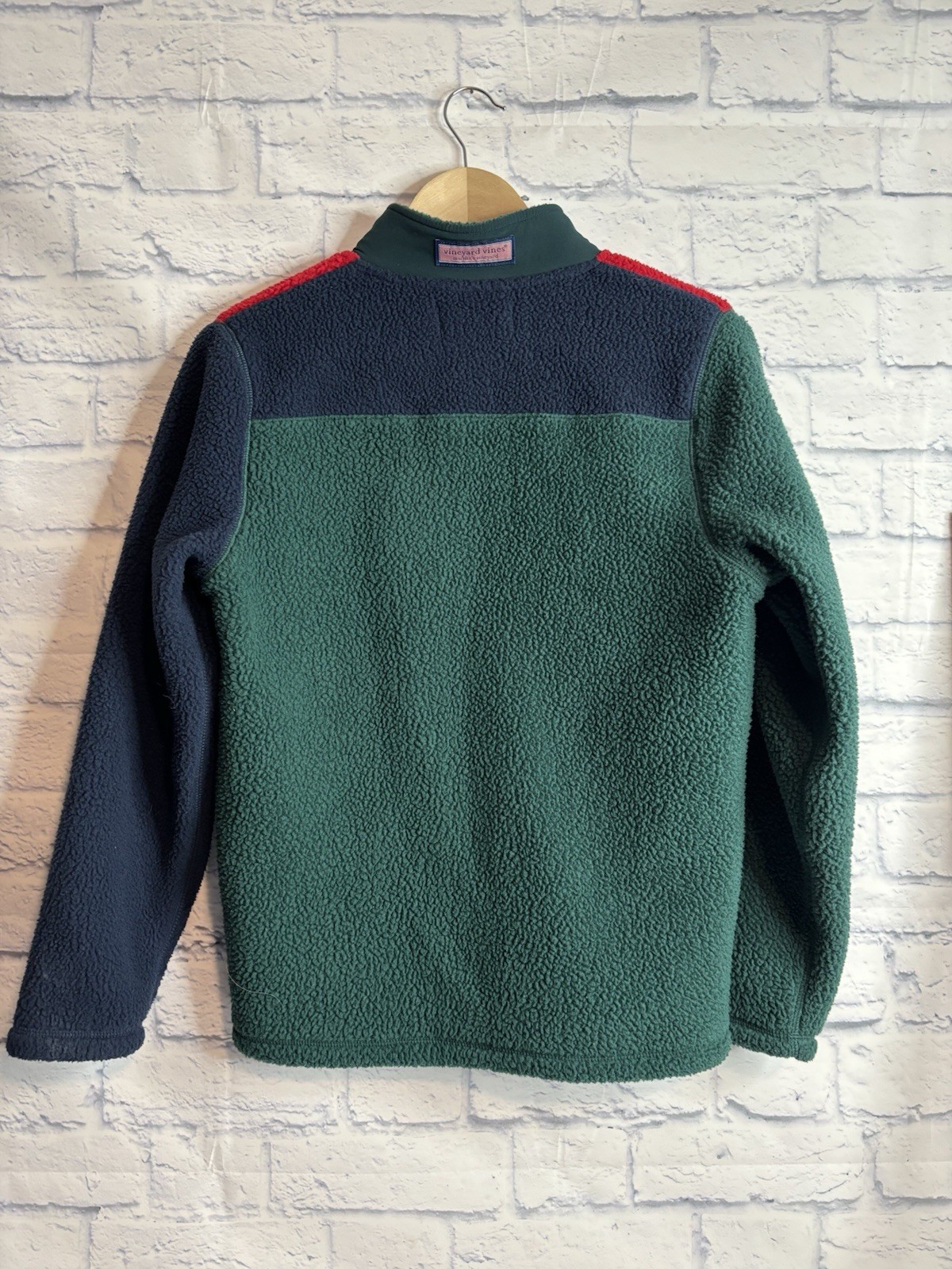 как выглядит Vineyard Vines 1/4 zip Boys Sherpa Jacket Pullover Fleece Colorblock L 16 фото