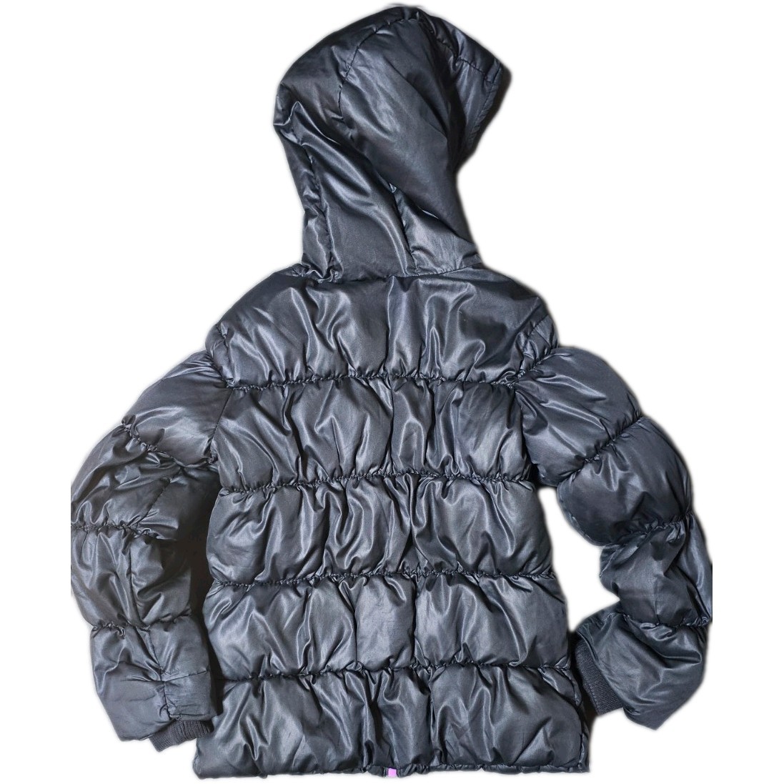 как выглядит Old Navy Puffer Jacket W/ Hood, Girls, Sz Small 6-7, Black W/purple Lining, Used фото
