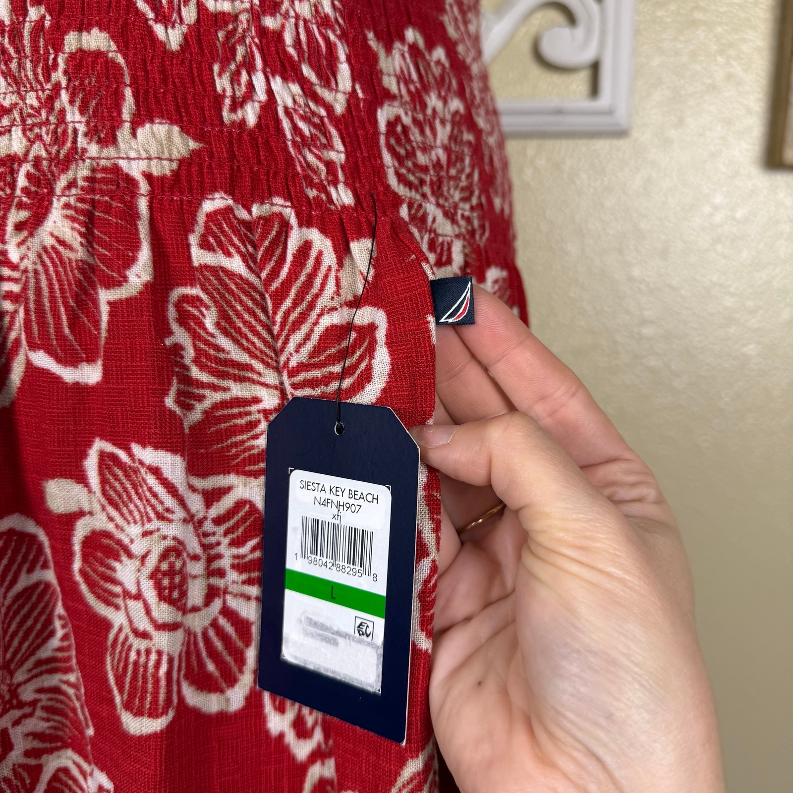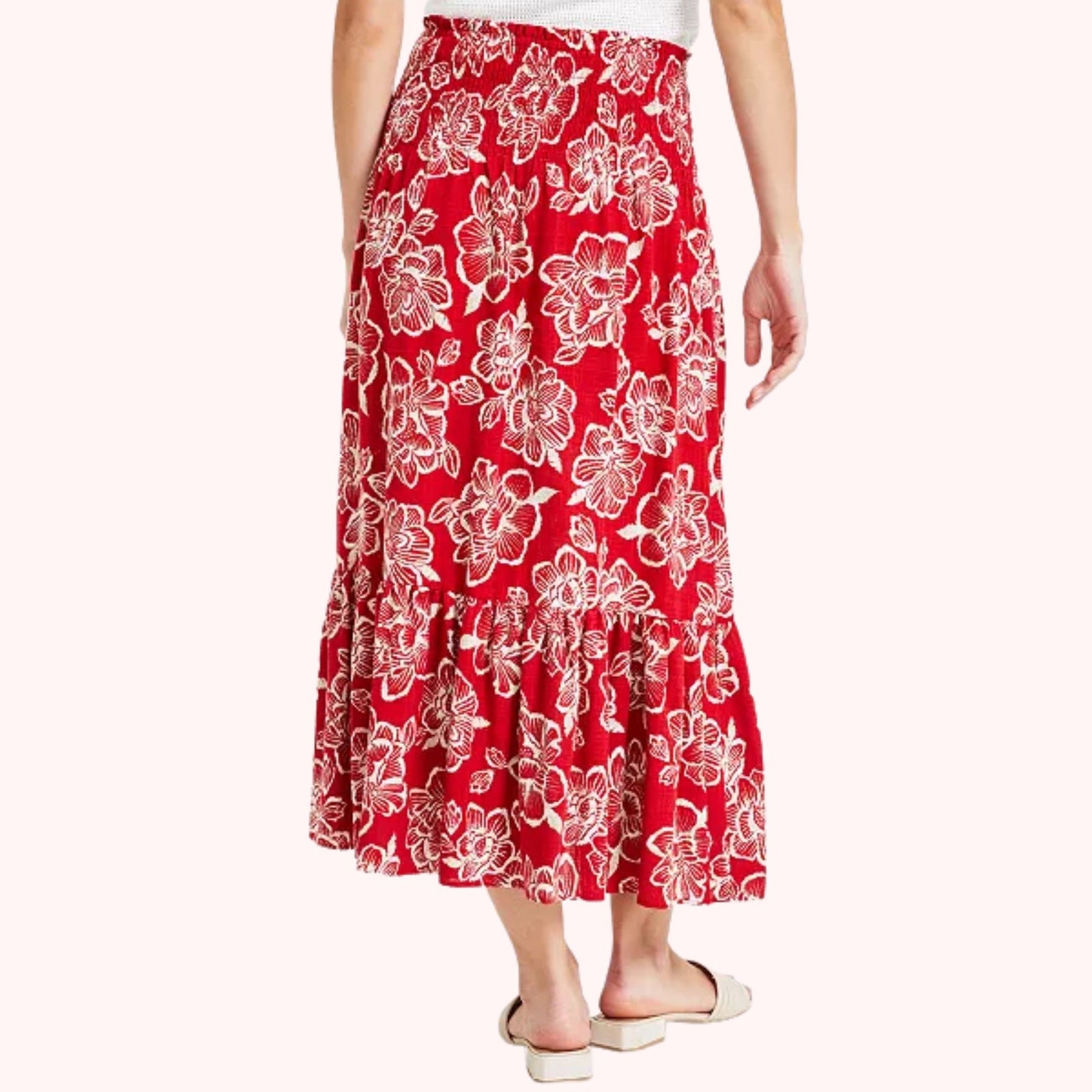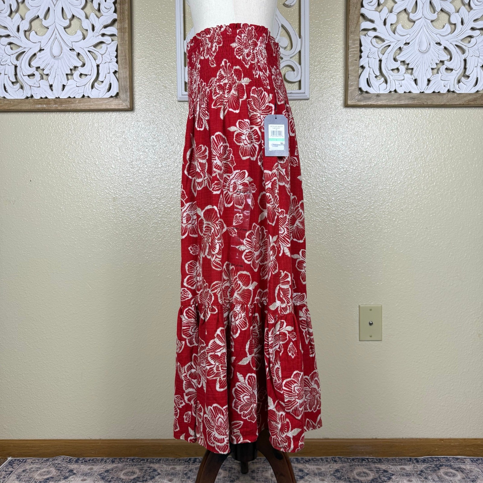 NWT Nautica Jeans Women's Floral Smocked-Waist Midi Skirt Smocked Tiered L