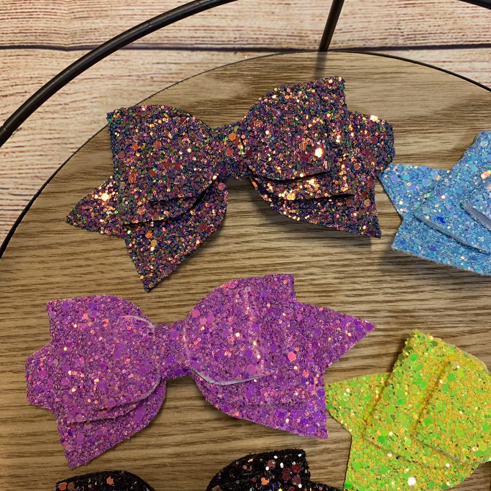 Glitter Hair Bows Set of 6 Blue, Orange, Black, Pink, Yellow, Multicolor New