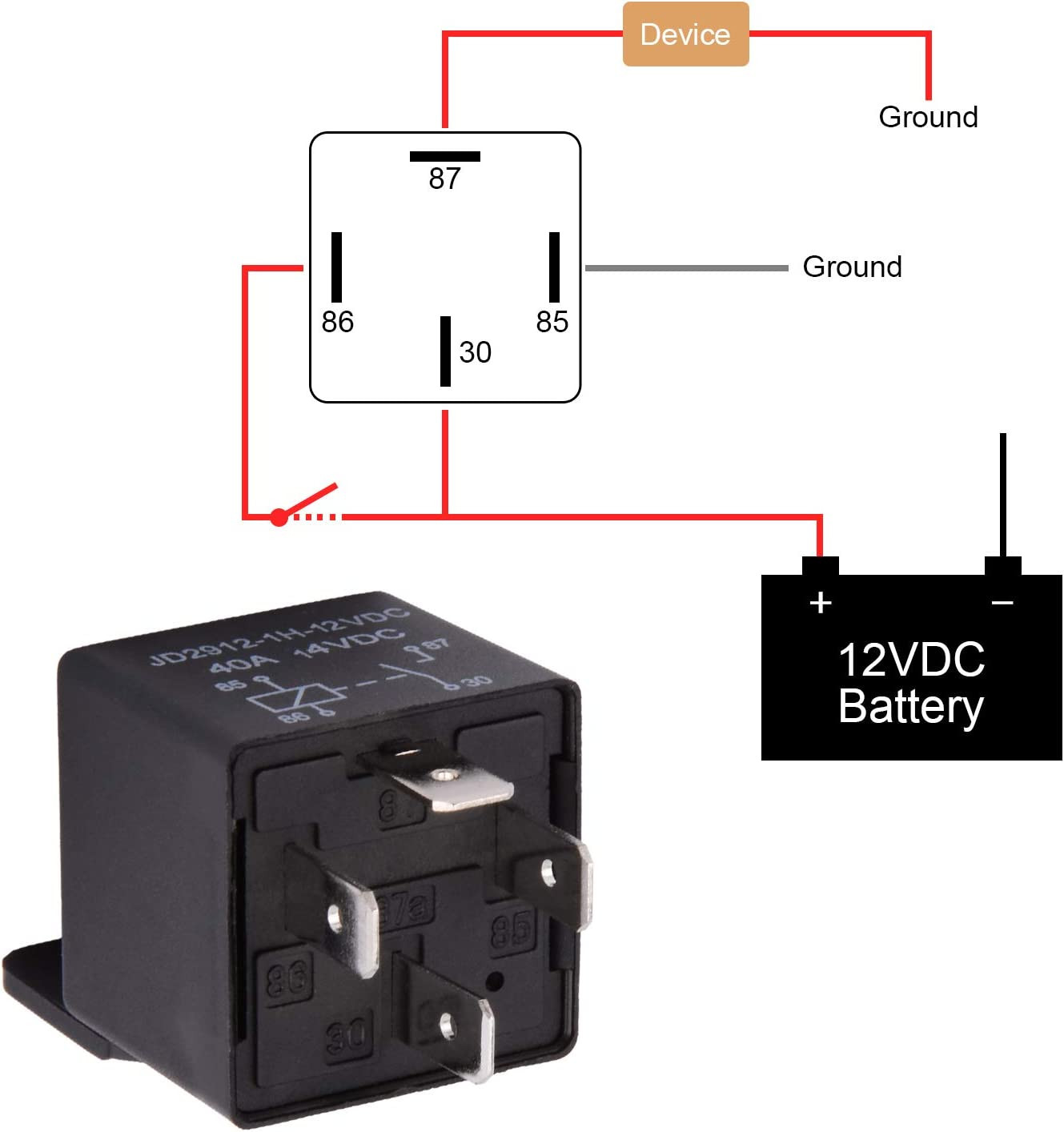Car Relay 4 Pin 12v 40amp Spst Model No.: JD2912-1H-12VDC 40A 14VDC, Auto Switch
