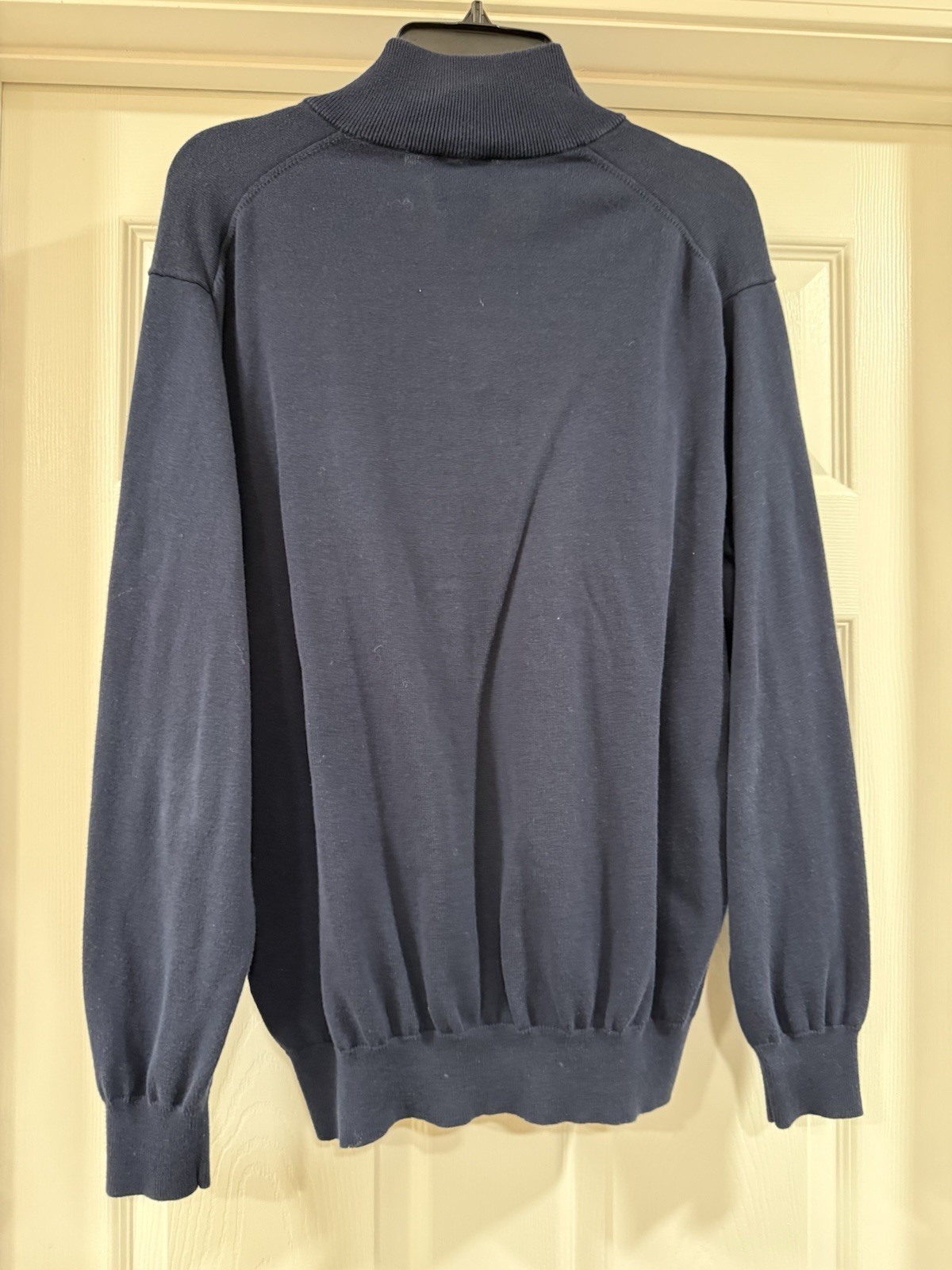 как выглядит Jos A Bank Traveler Sweater Men L-XL Navy Blue Pima Cotton 1/4 Zip Pullover EUC фото
