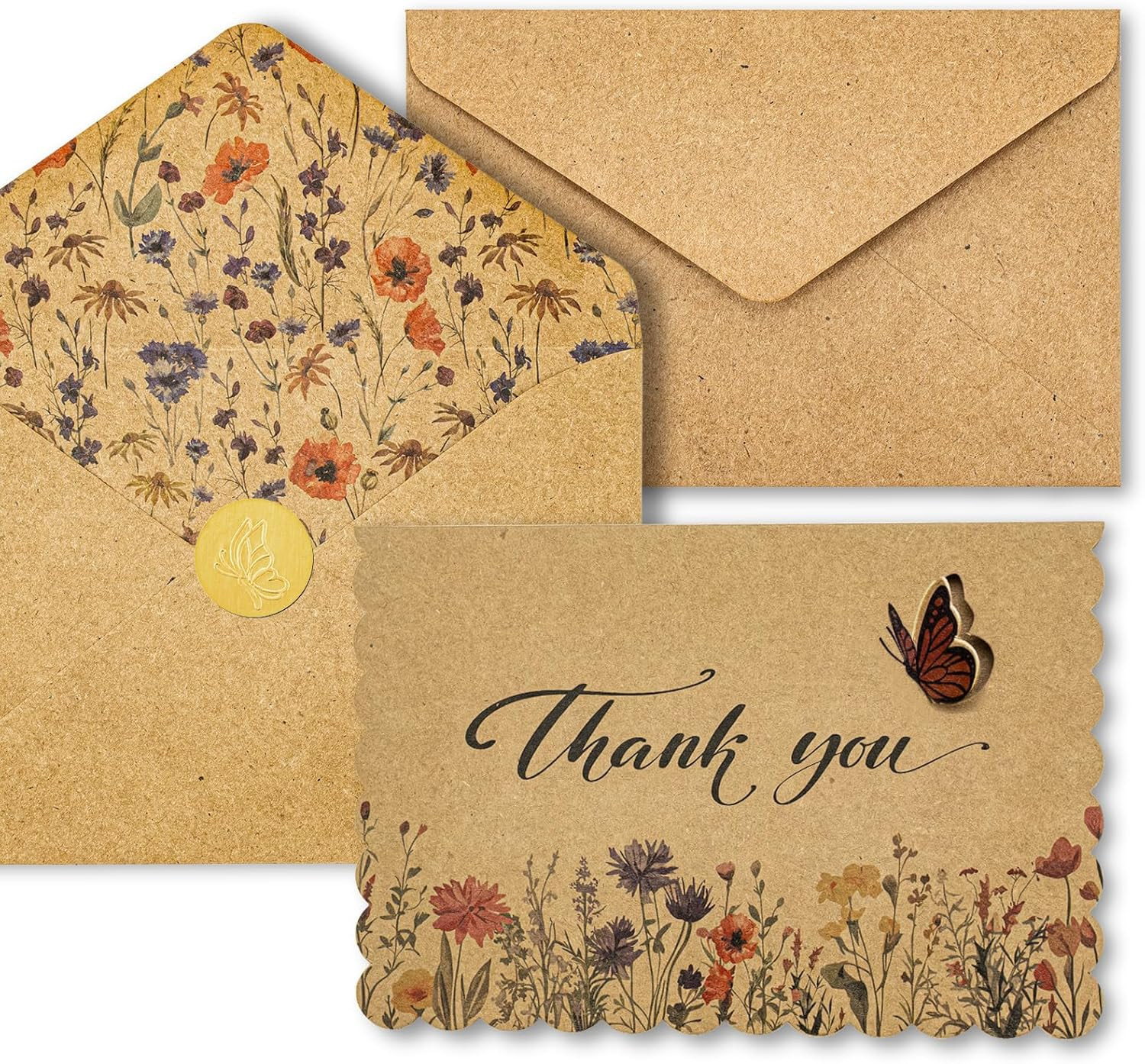 Floral Thank You Cards with Envelopes, 24 Pack, 4X6 Wildflower Design