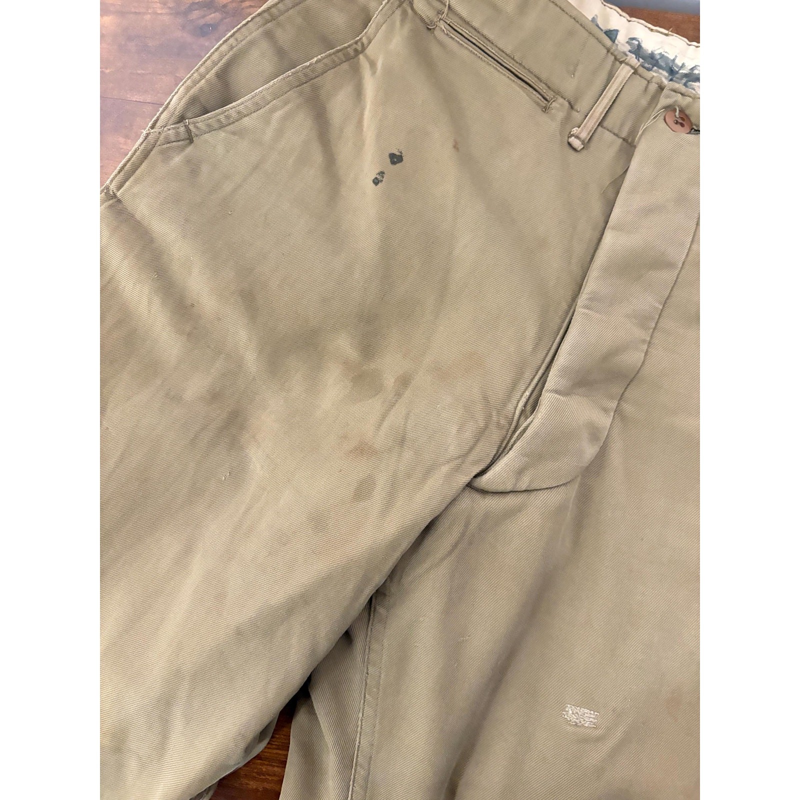 40s vintage distressed military M-42 khaki chino pants trousers 100 W32 443358