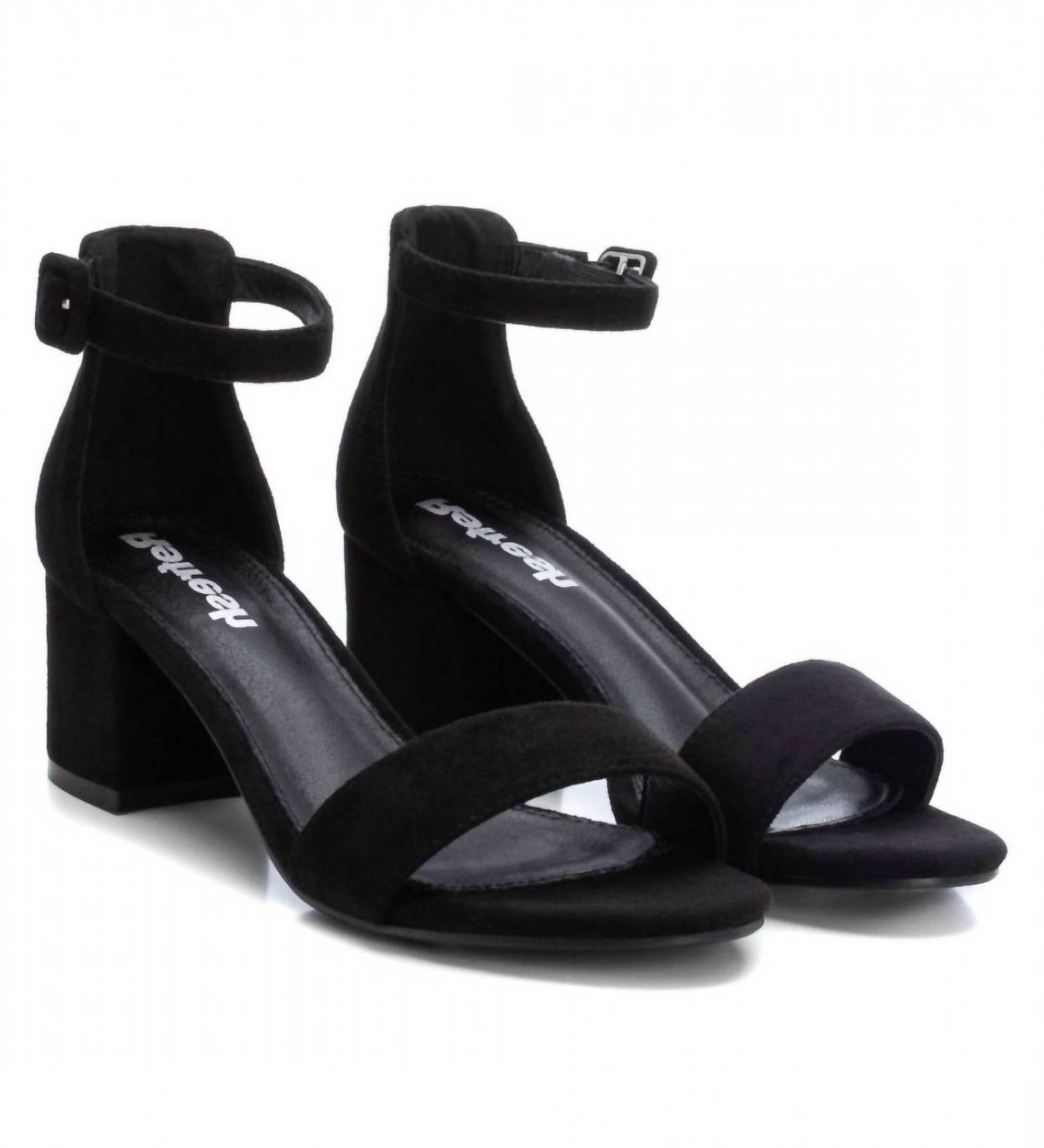 как выглядит Xti Womens Block Heel Suede Sandals Black фото