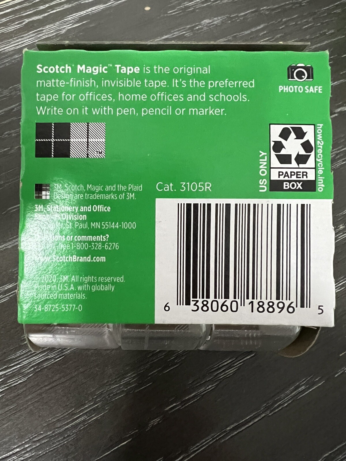 как выглядит Scotch 3M Magic Tape Multipurpose Matte Finish 3/4" x 325" ea - 12 Rolls Total фото