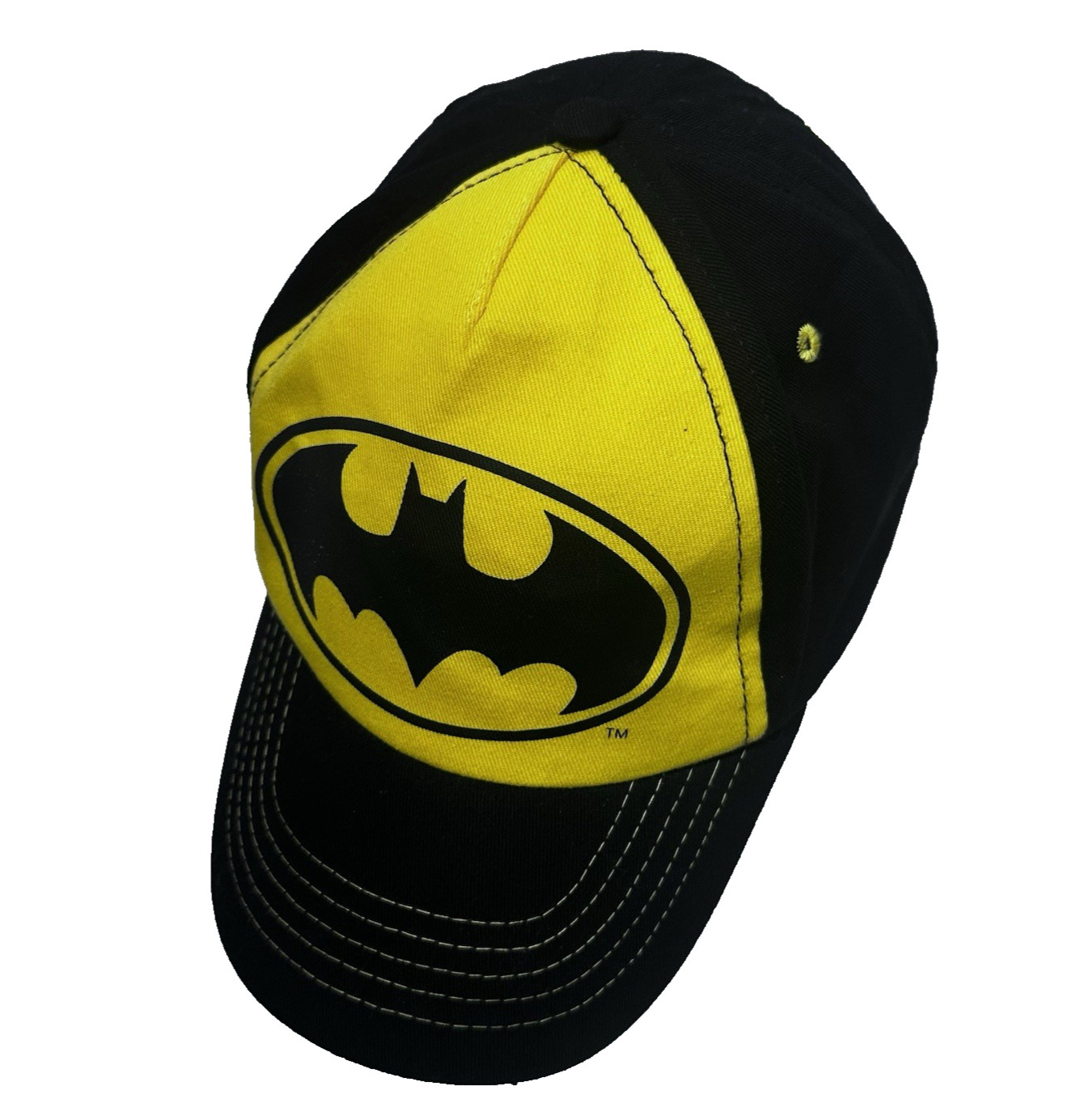 DC Comics Batman Hat Small Adult Black Yellow Hook and Loop Kids Cap