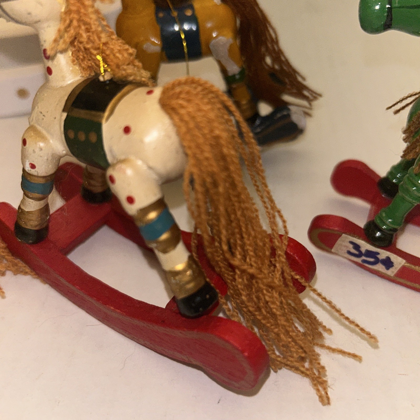 как выглядит Vintage Christmas Wood Rocking Horse Ornaments 5 Mini 1 Medium Hand Painted фото