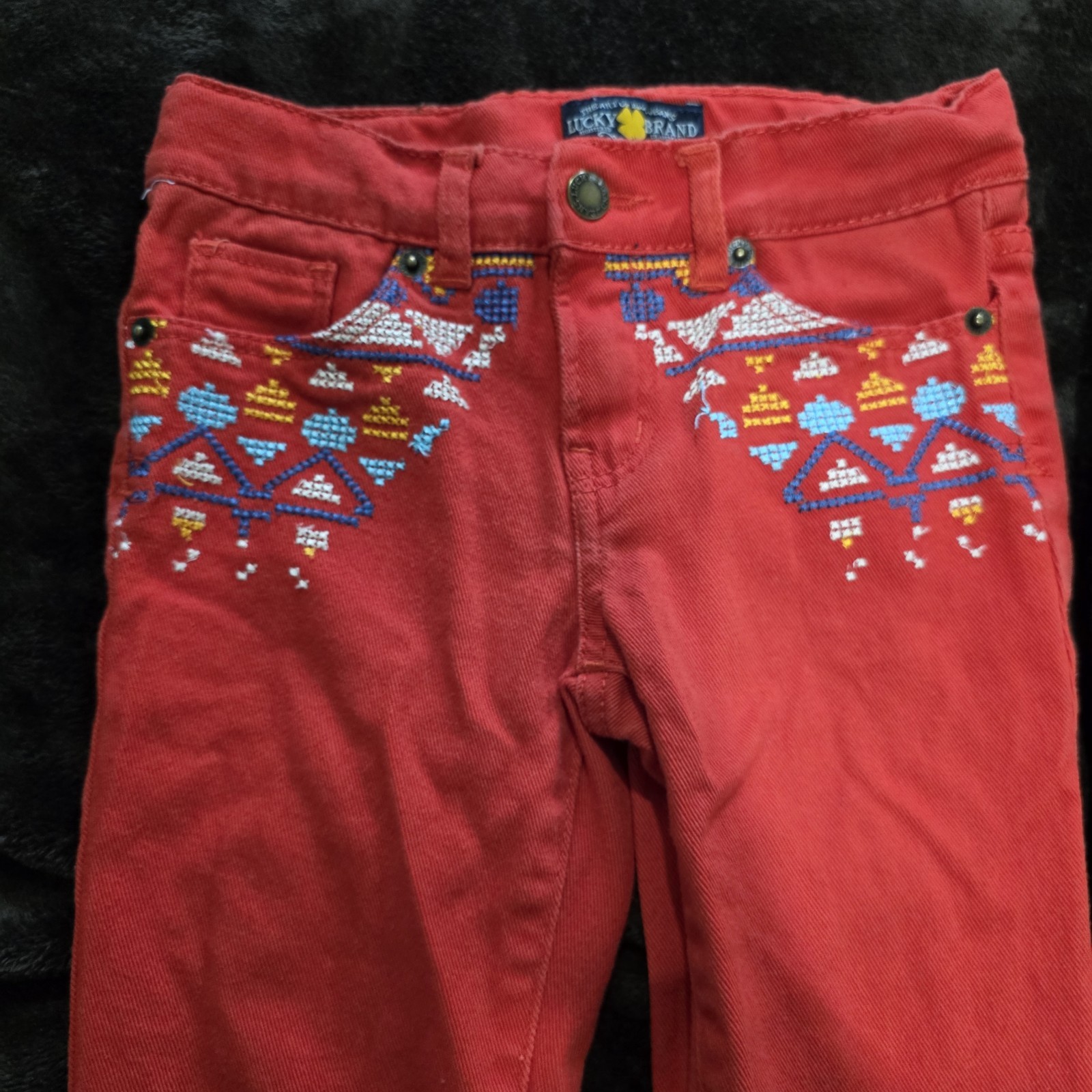 как выглядит LUCKY BRAND Girls Jeans Zoe Jegging 6/6x Denim Pants Adjustabl Waist Embroidery фото