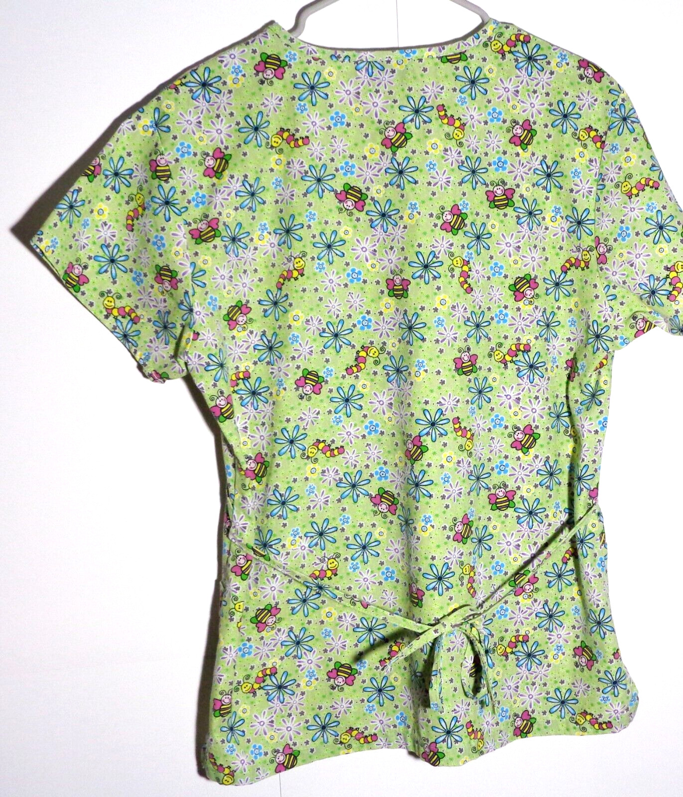 Women's Cotton/Poly Scrub Top With Butterflies Flowers in Size Medium