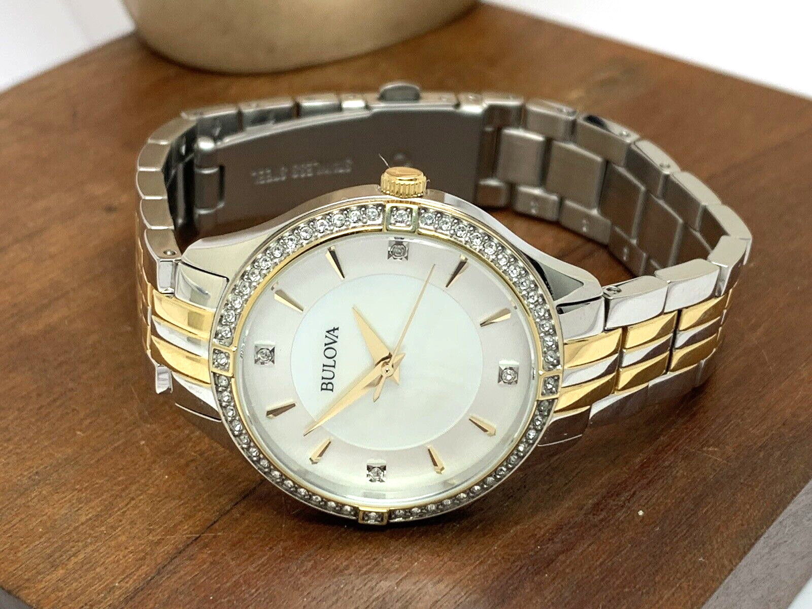 Bulova Women's Watch 98L273 Mother of Pearl Dial Crystal Accent Two Tone Steel