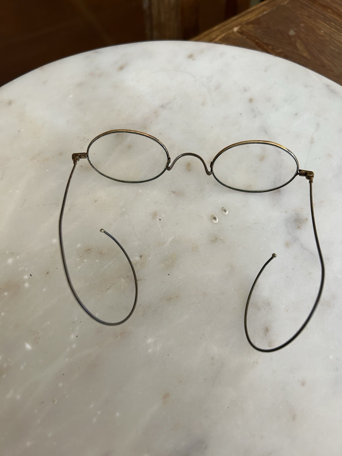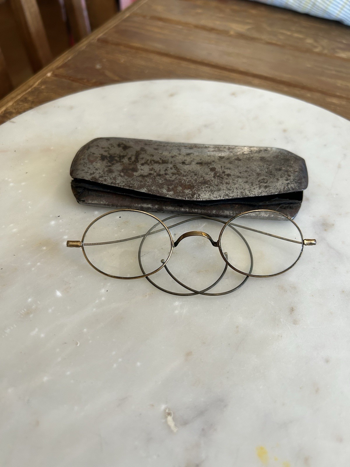 Antique Pince-Nez Eyeglasses Gold Wire Cable Temple Metal Case 1800 Early 1900s