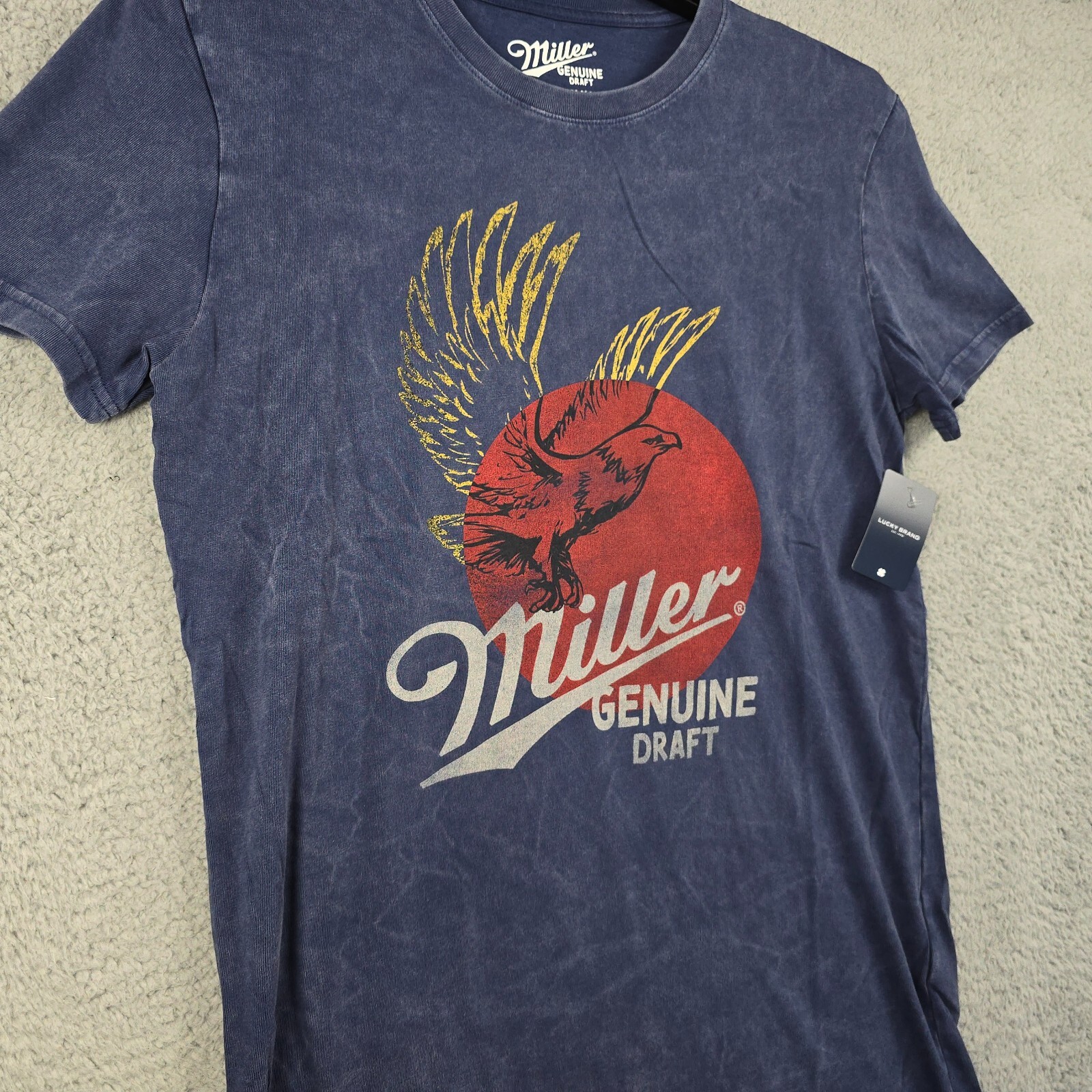 LUCKY BRAND MILLER Genuine Draft SHIRT Mens Medium Blue Beer MGD CASUAL NWT