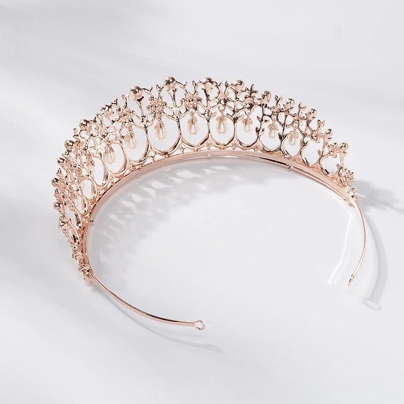 Princess Faux Pearl Crystal Rhinestone Bridal Hair Tiara Crown Headband T11895R