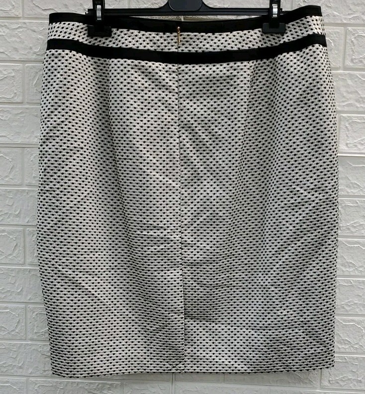 New Calvin Klein Piped Pencil Skirt White/Black Size 18 W