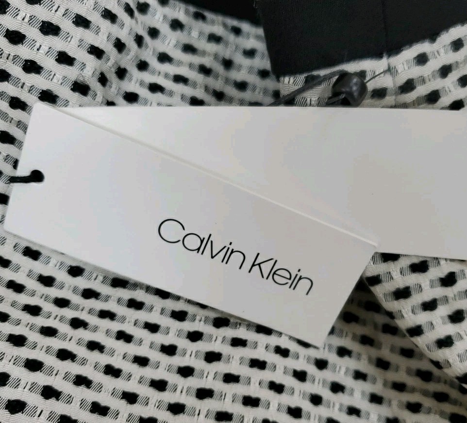 как выглядит New Calvin Klein Piped Pencil Skirt White/Black Size 18 W фото