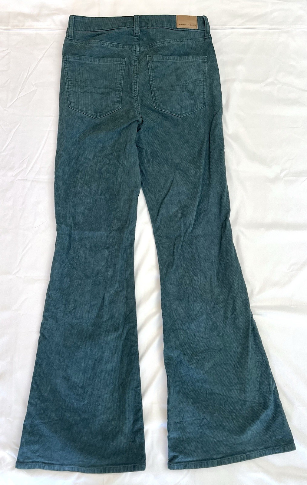 как выглядит American Eagle Green Corduroy Boho Stretch Super Hi-Rise Flare Pants Size 2 S фото