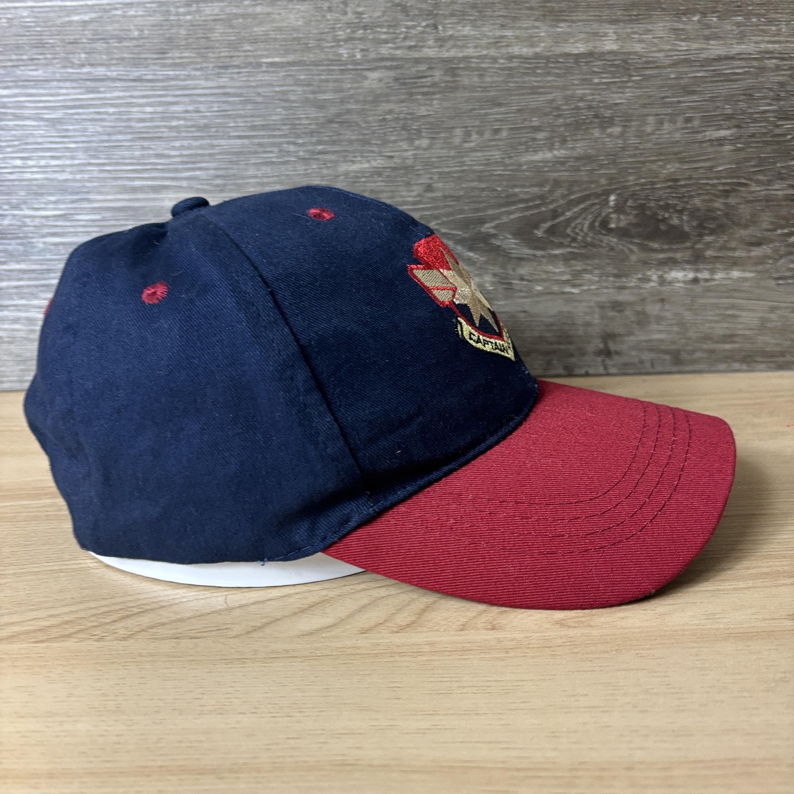 как выглядит Captain Marvel Hat Cap Snap Back Mens Navy Red Embroidered Superhero Logo NWT фото