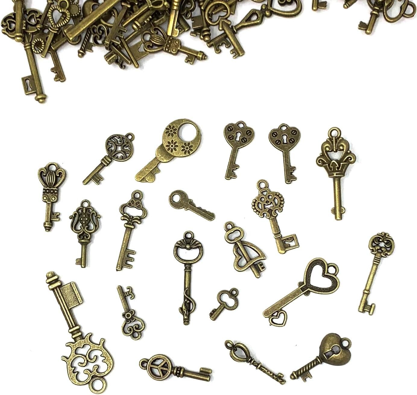125Pcs Vintage Skeleton Key Charms Antique Bronze Brass for DIY Jewelry Making