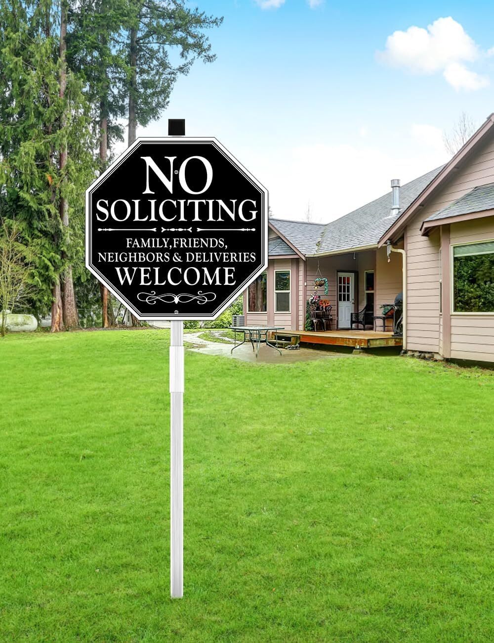 как выглядит No Soliciting Sign For House, 11" x 27" No Soliciting Yard Sign With Stake, M... фото