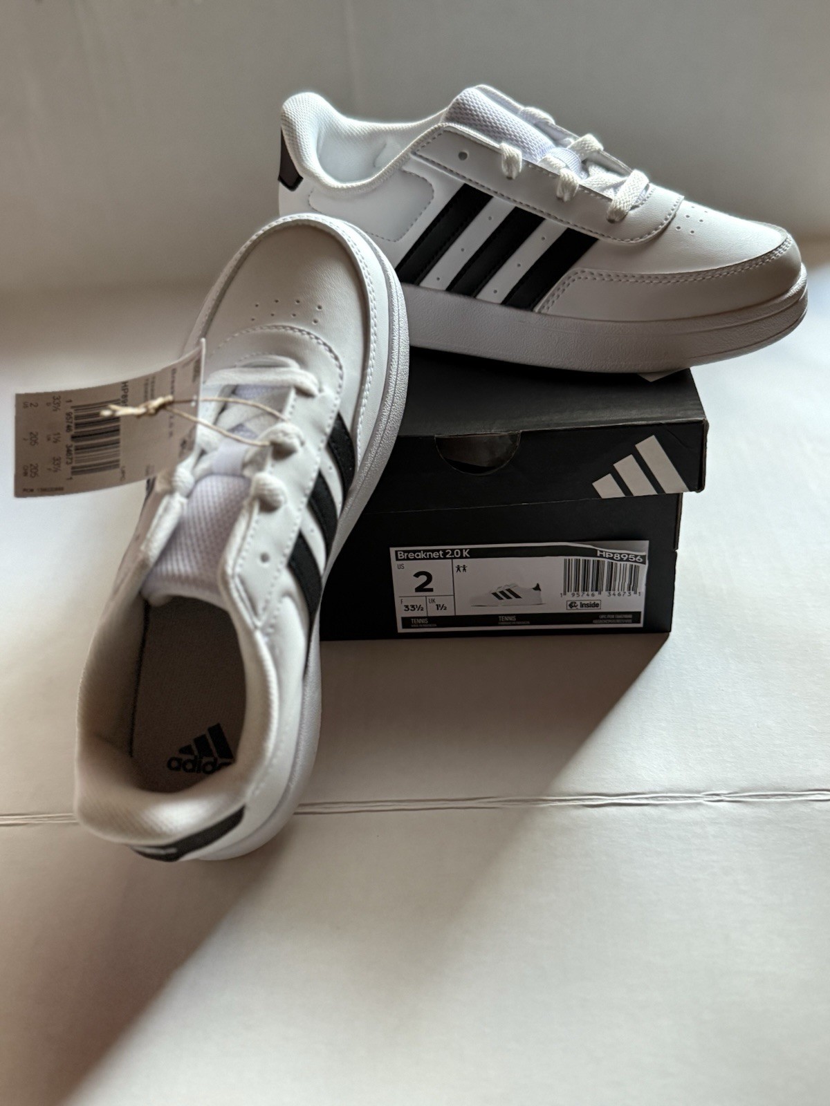 adidas Breaknet 2.0 Low White Sz 2y NIB 3 Stripe Sneakers Tennis Shoes Youth NEW