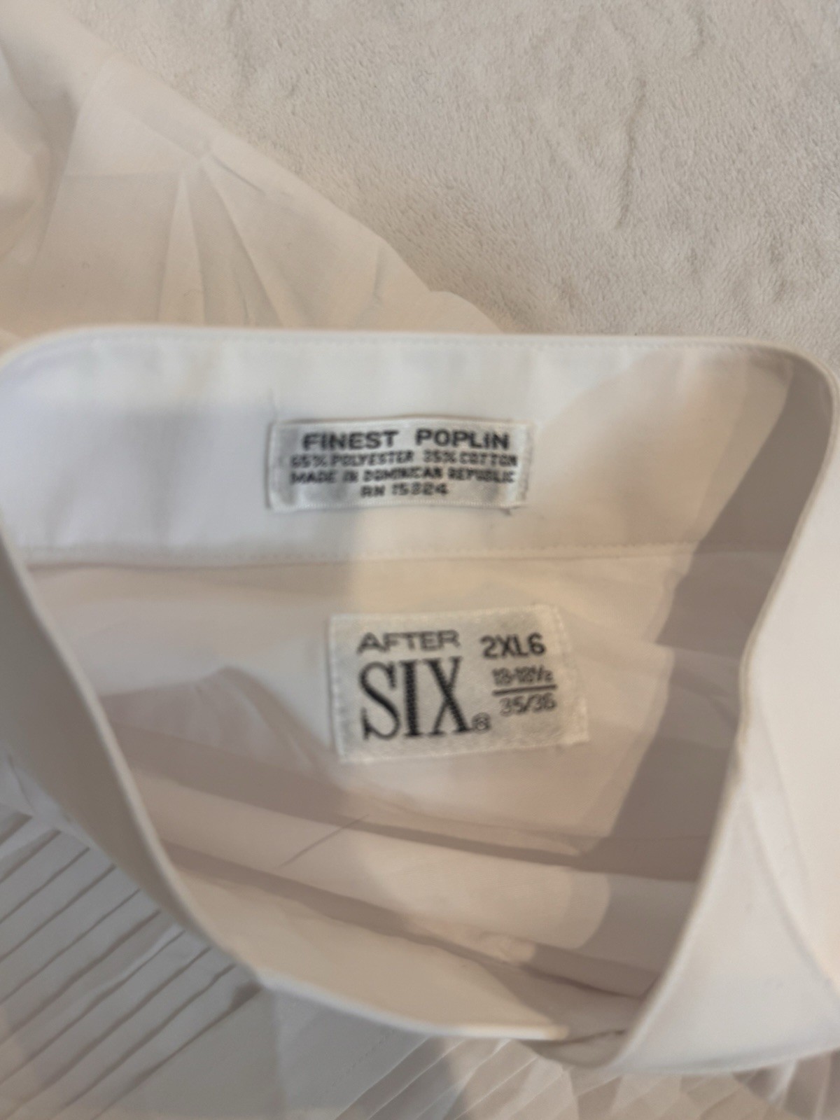 как выглядит After Six Mens White Pleated Tuxedo Dress Shirt - Size 2XL6 18-18 1/2 35/36 фото