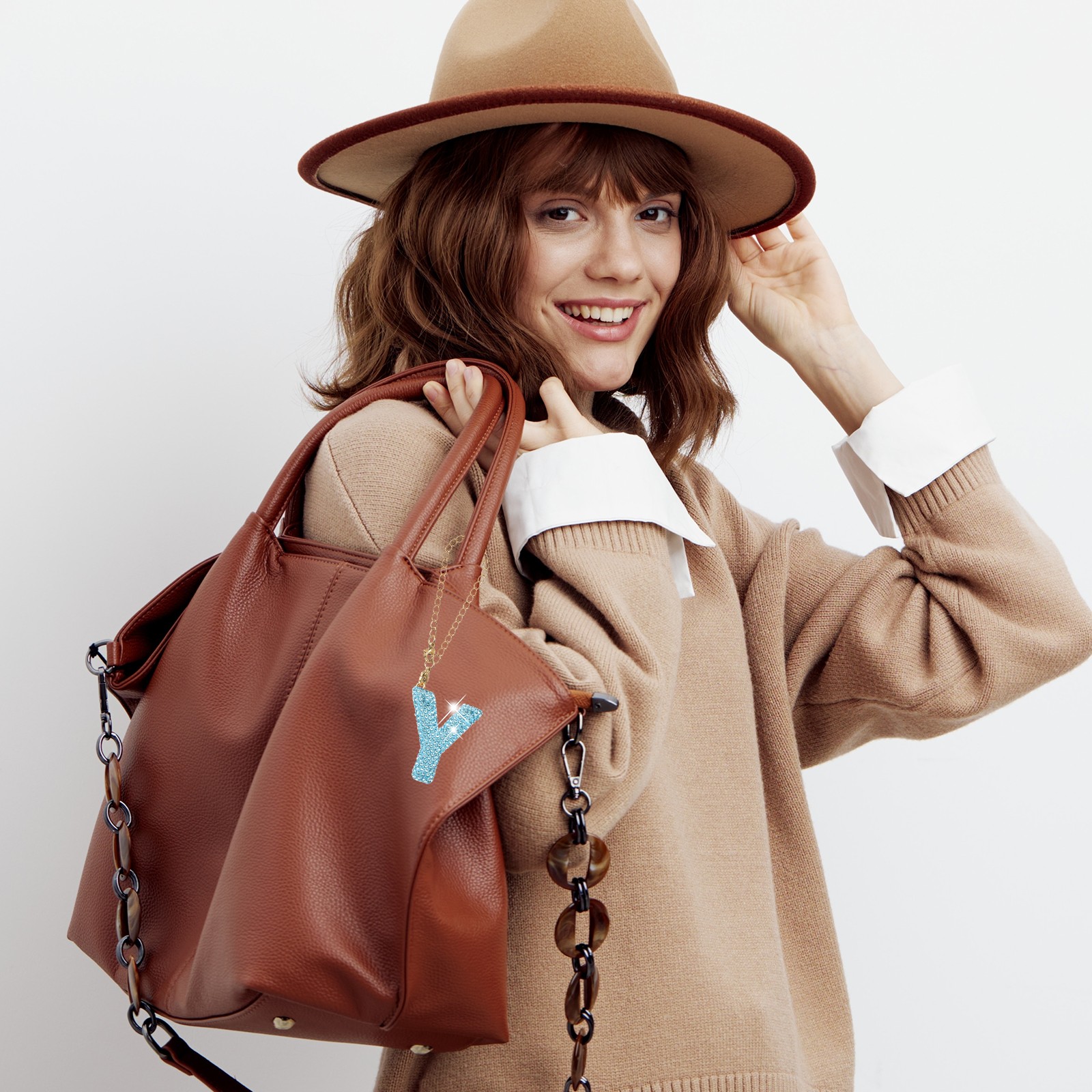 Letter Bag Charm Bling Glitter Letter Charm Initial, Blue, Y Shape