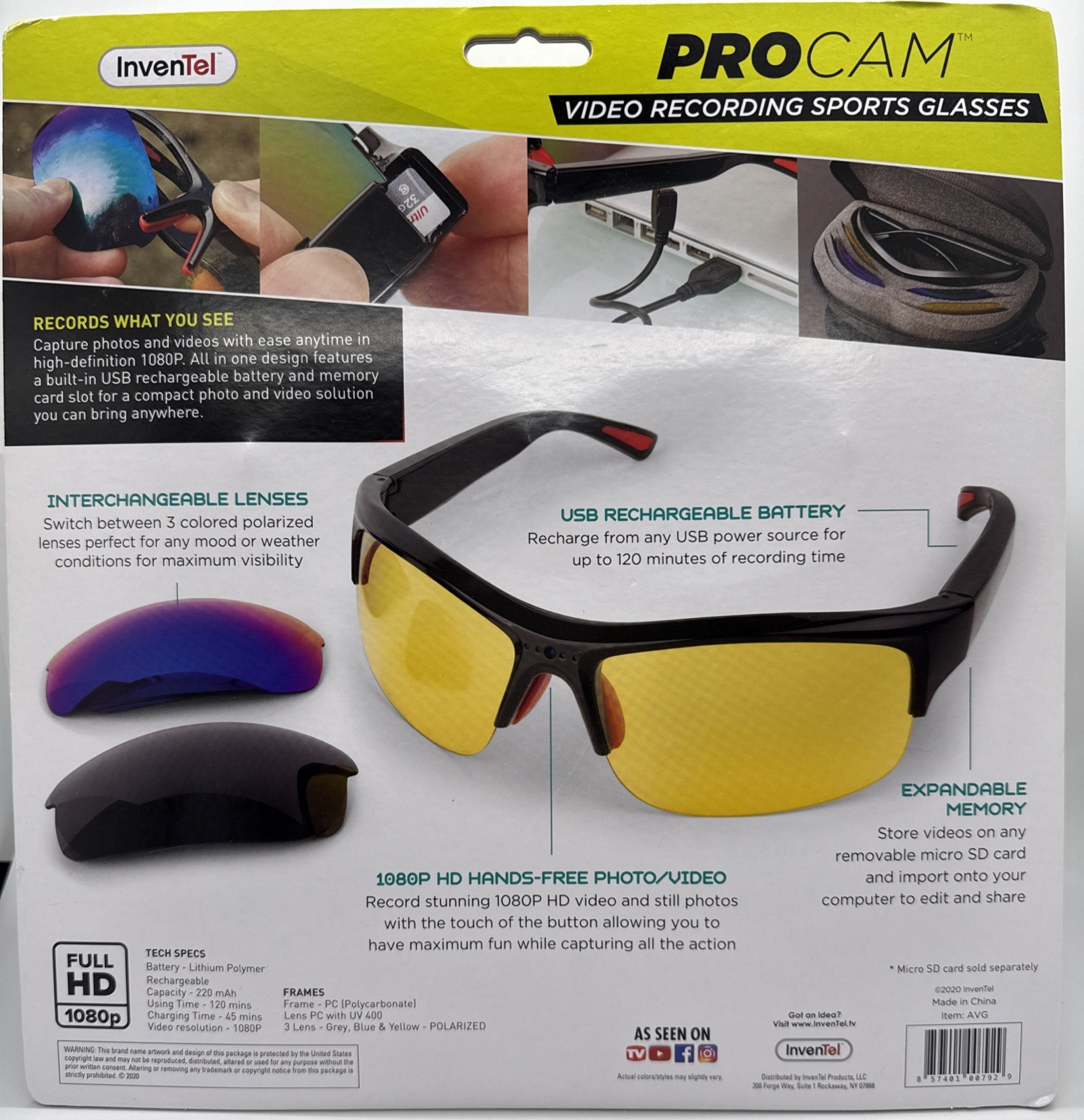 InvenTel PROCAM Video Recording Sports Glasses w/Interchangeable Lens Case NEW
