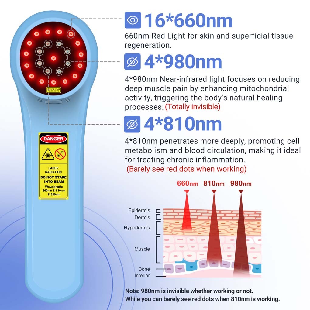 660/810/980nm Cold Laser Device Low Level Laser Therapy for Pain Relief Home Use