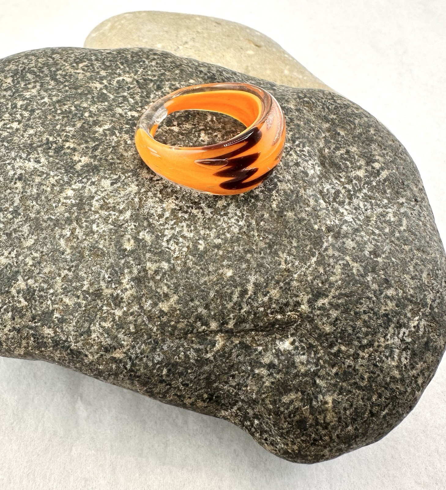 Art Handmade Murano Style Glass Statement Ring Orange Brown Design Size 8