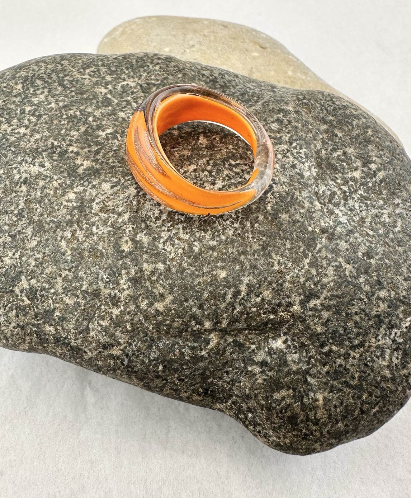 как выглядит Art Handmade Murano Style Glass Statement Ring Orange Brown Design Size 8 фото