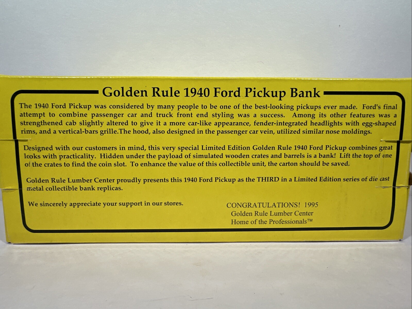 Liberty Classics 1/25 Bank - 1940 Ford Pickup w/ Sideboards - Golden Rule Lumber