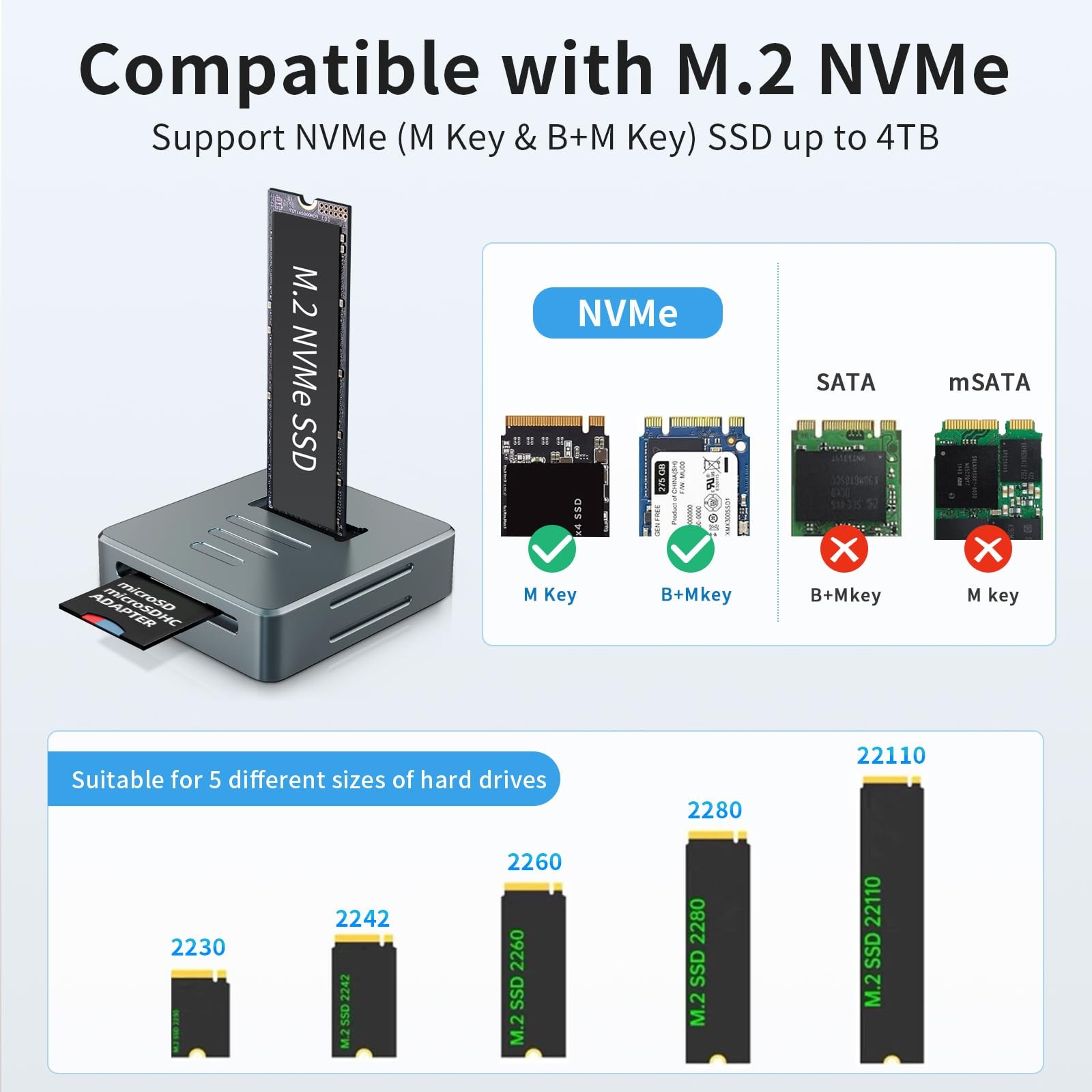 M.2 NVMe SSD Enclosure Docking Station with SD Reader 10Gbps USB Adapter