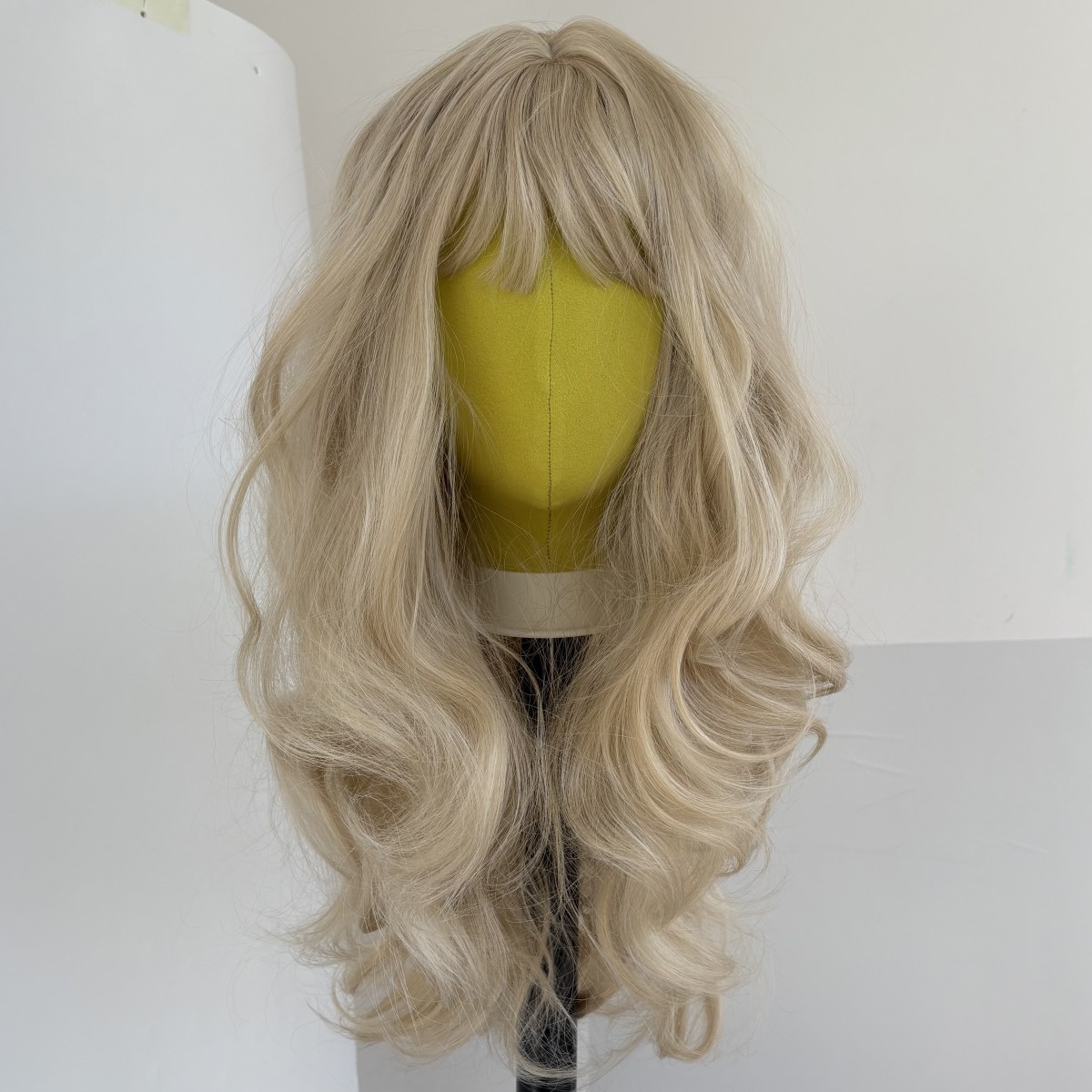 Heat Resistant Hair Ash blonde Layered Dress Up Wigs With Bangs Long Wavy