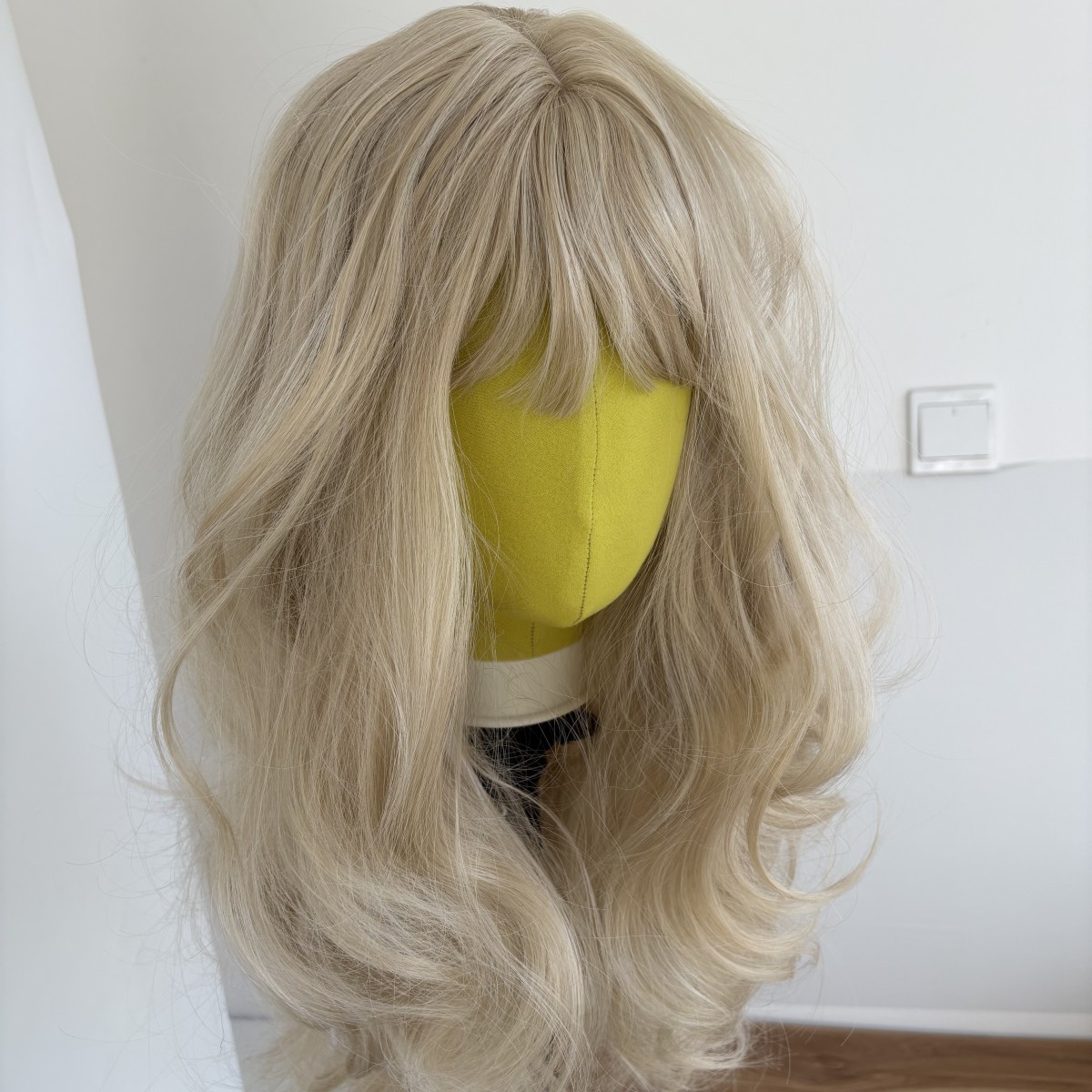 как выглядит Heat Resistant Hair Ash blonde Layered Dress Up Wigs With Bangs Long Wavy фото