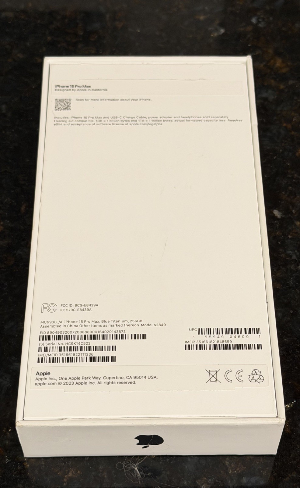 Original BOX for APPLE iPhone 15 Pro Max iPhone Box Empty -BLUE TITANIUM