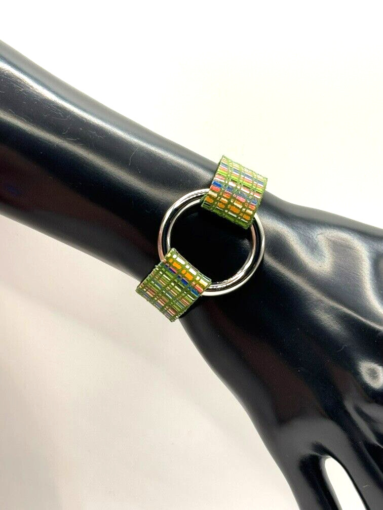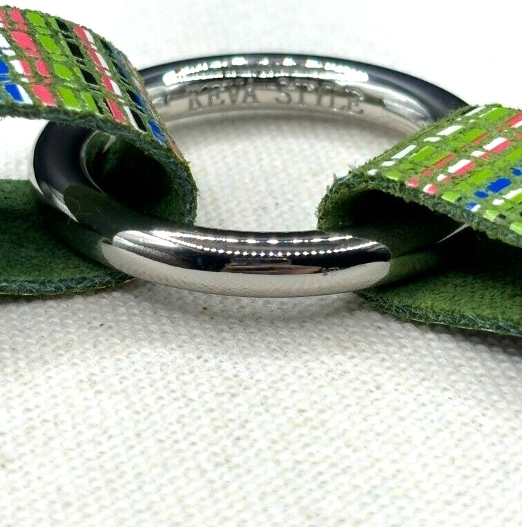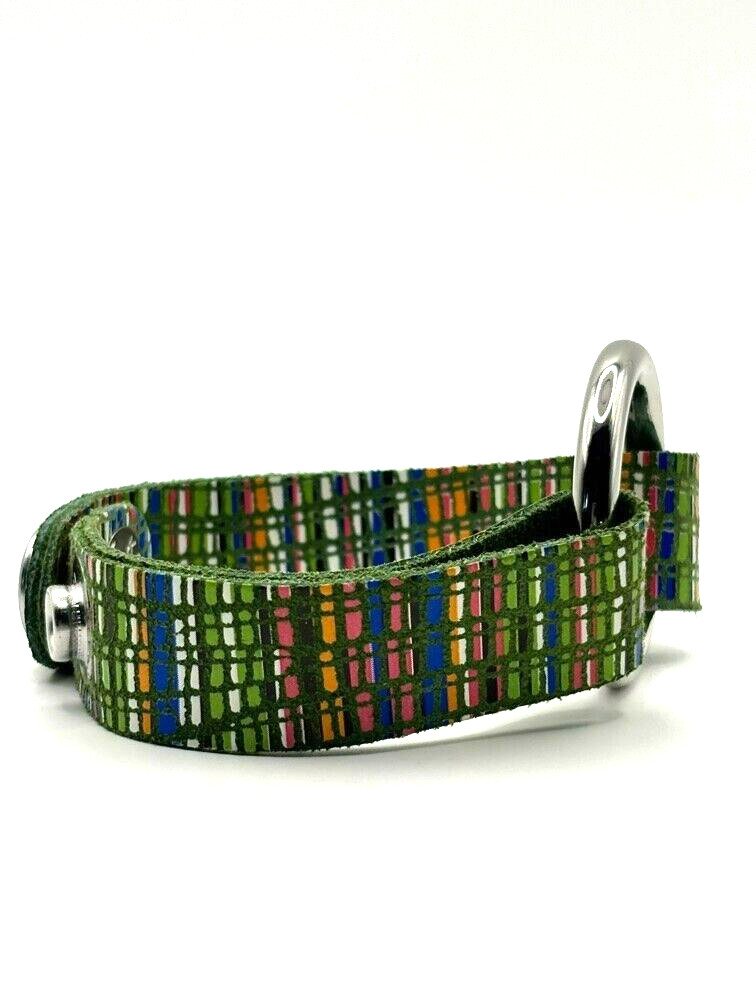 Keva Positano Girls Multi Color Plaid Leather Stainless Steel Ring Cuff Bracelet