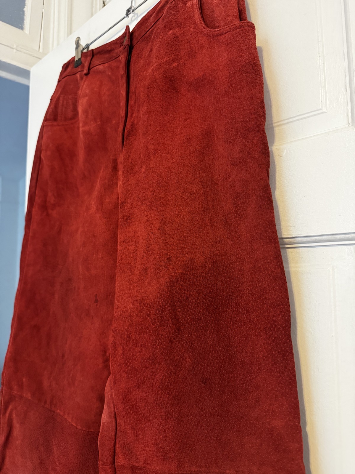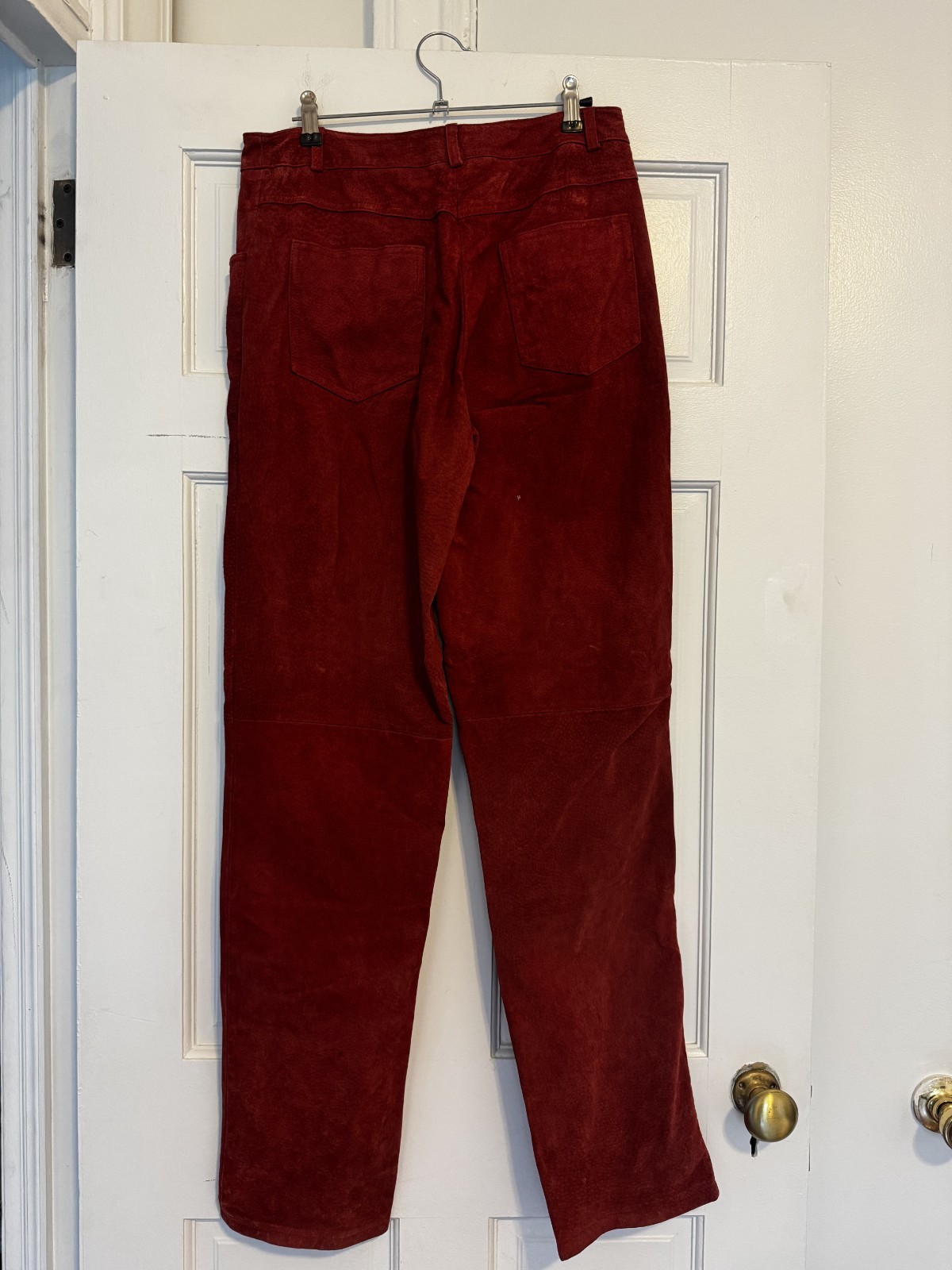 как выглядит Vintage Metro Style Genuine Suede Leather Pants Red, Sz 10T фото