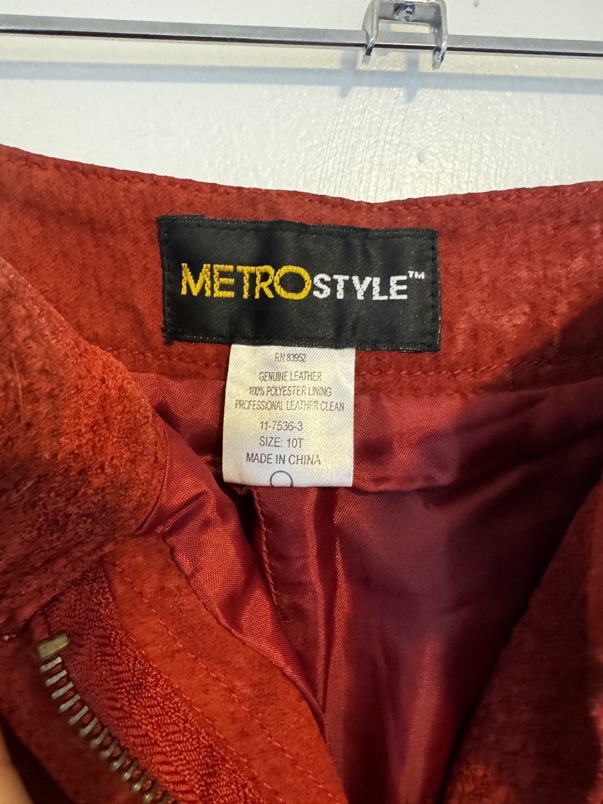 Vintage Metro Style Genuine Suede Leather Pants Red, Sz 10T