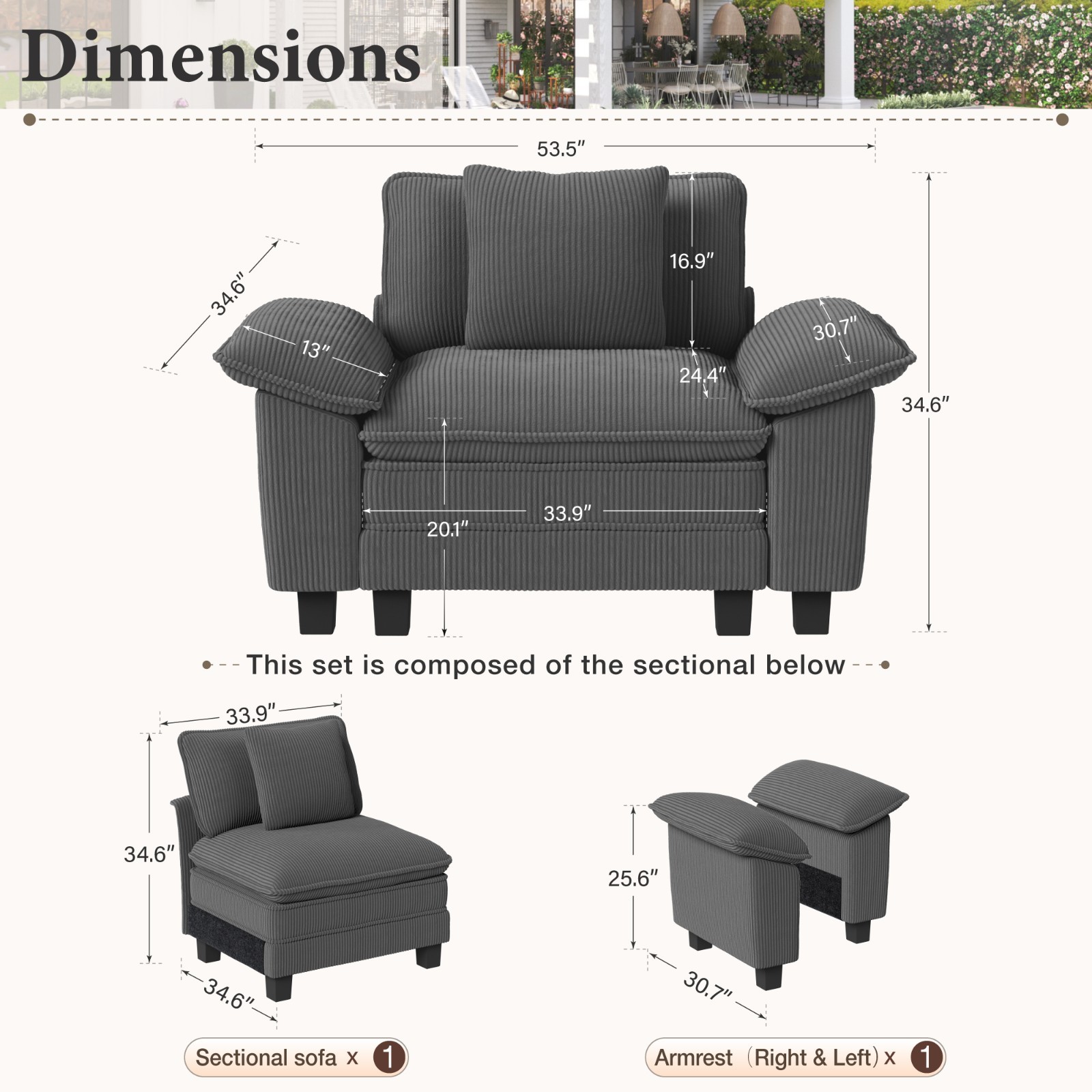 Modular Sectional Sofa U/L Shaped Corduroy Cloud Couch with Chaise and Cushion