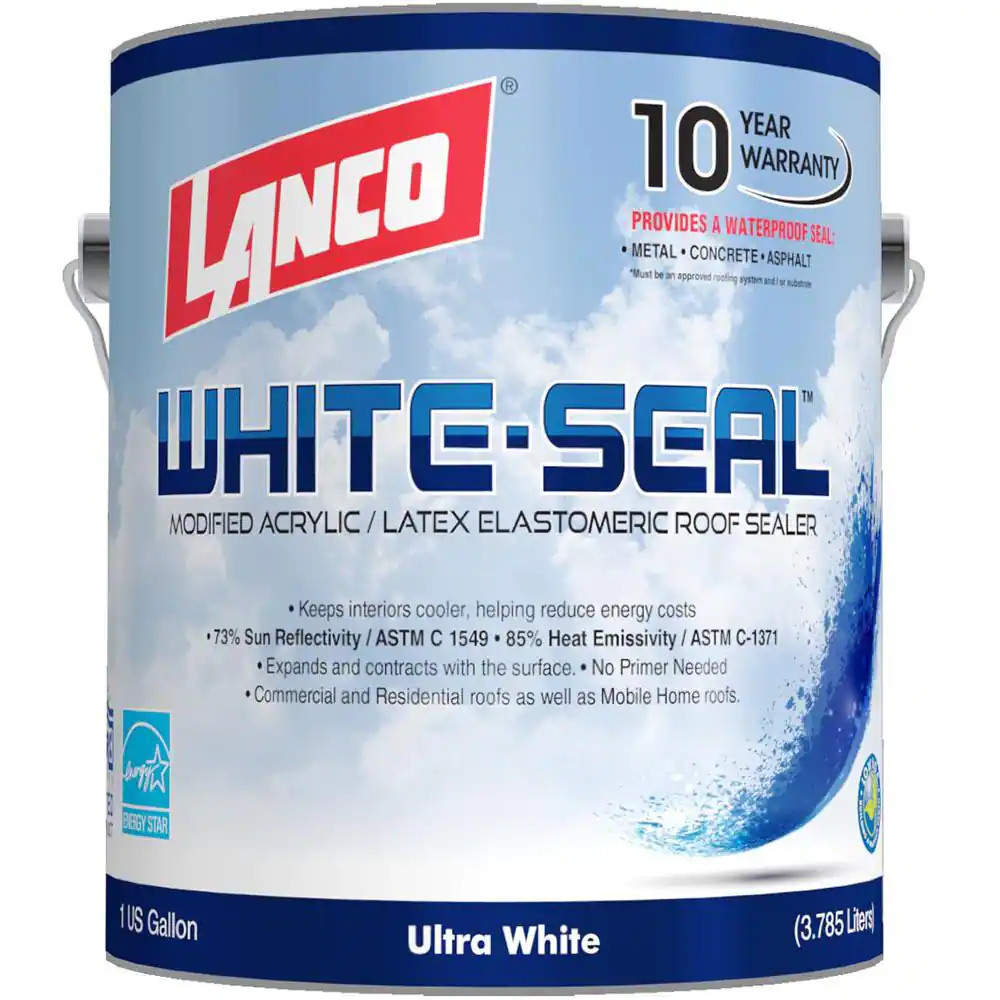 Lanco Roof Sealer White Reflective Acrylic Elastomeric Waterproof Coating 1 Gal