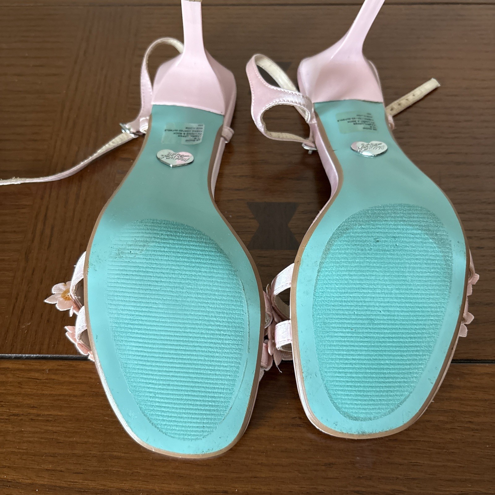 betsy Johnson pink strappy sandal heels with flowers and pearls womens size 10