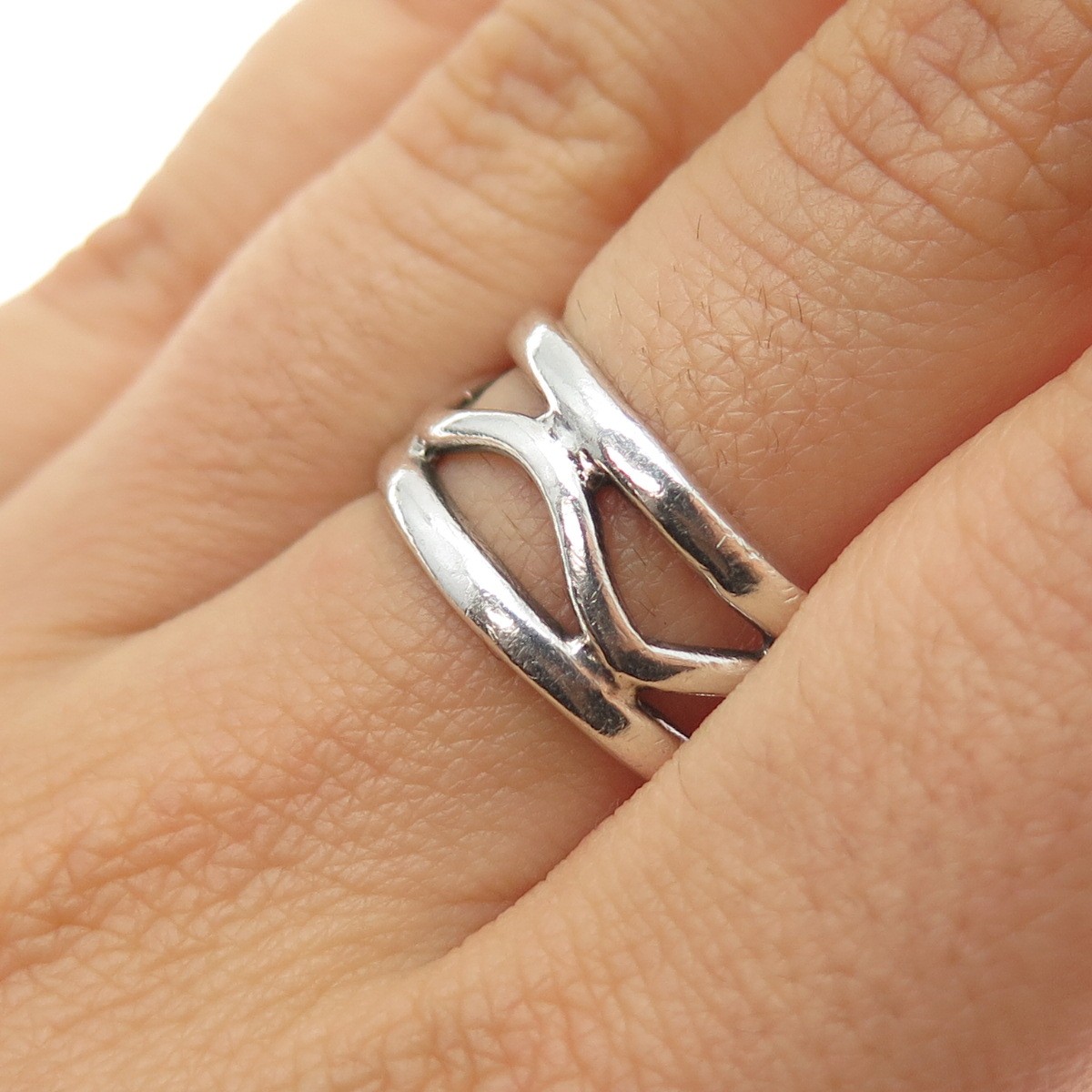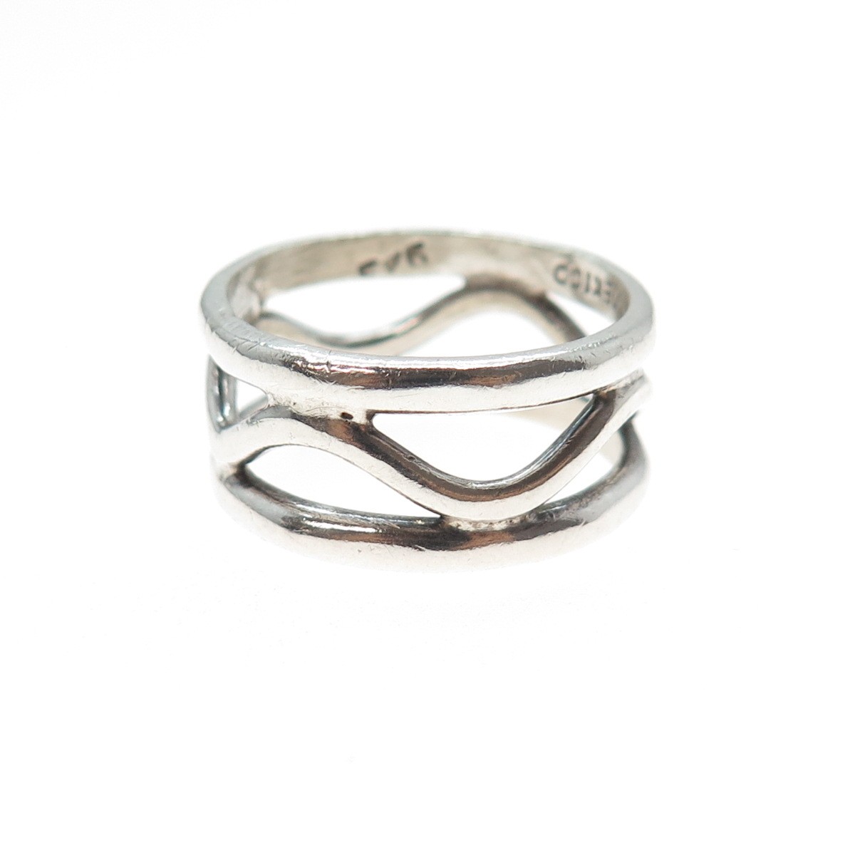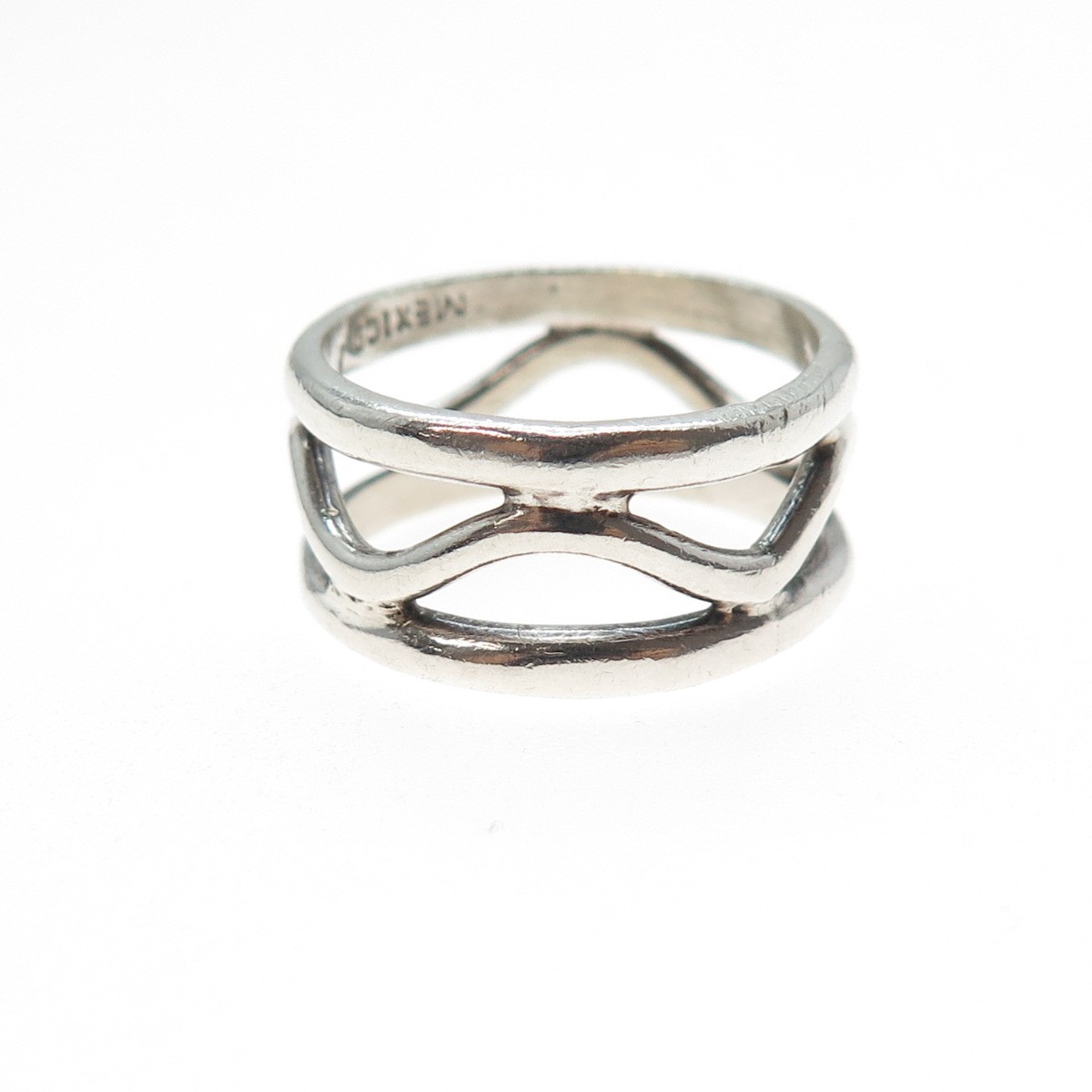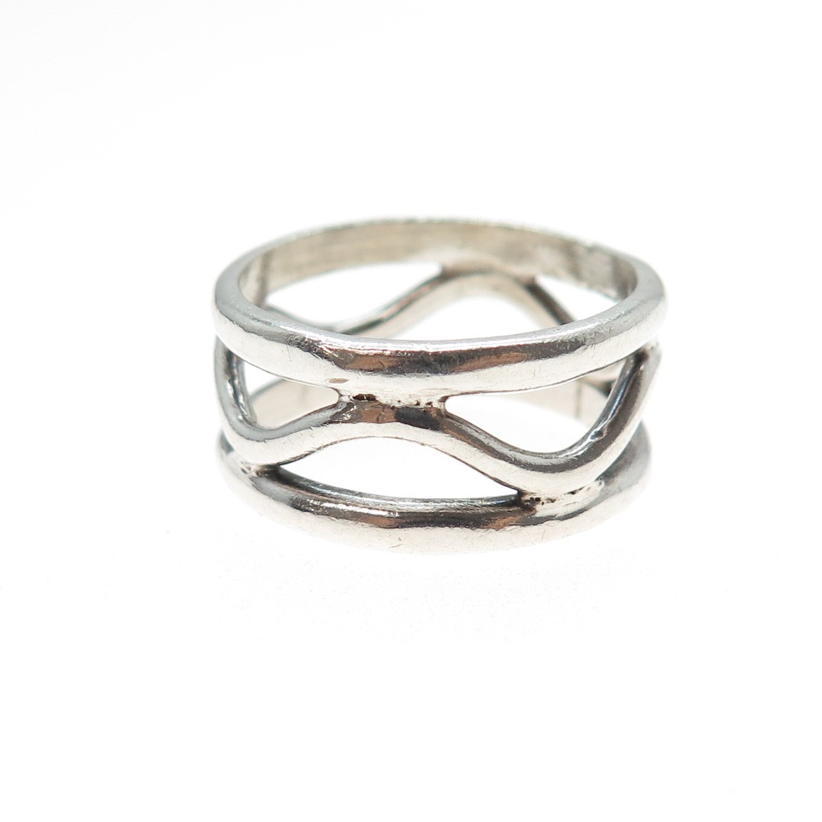 925 Sterling Silver Vintage Mexico Modernist Zig Zag Band Ring Size 8.25