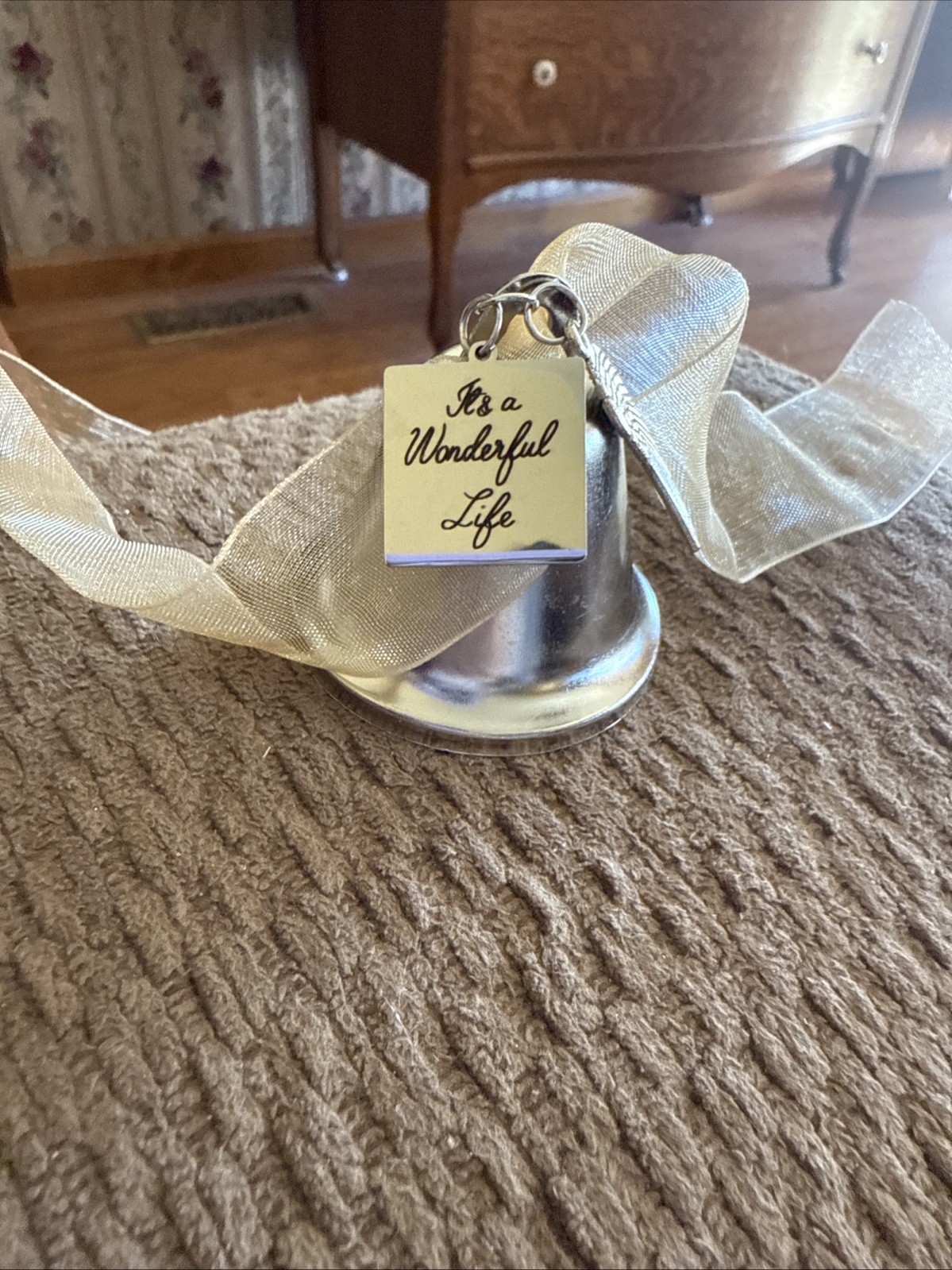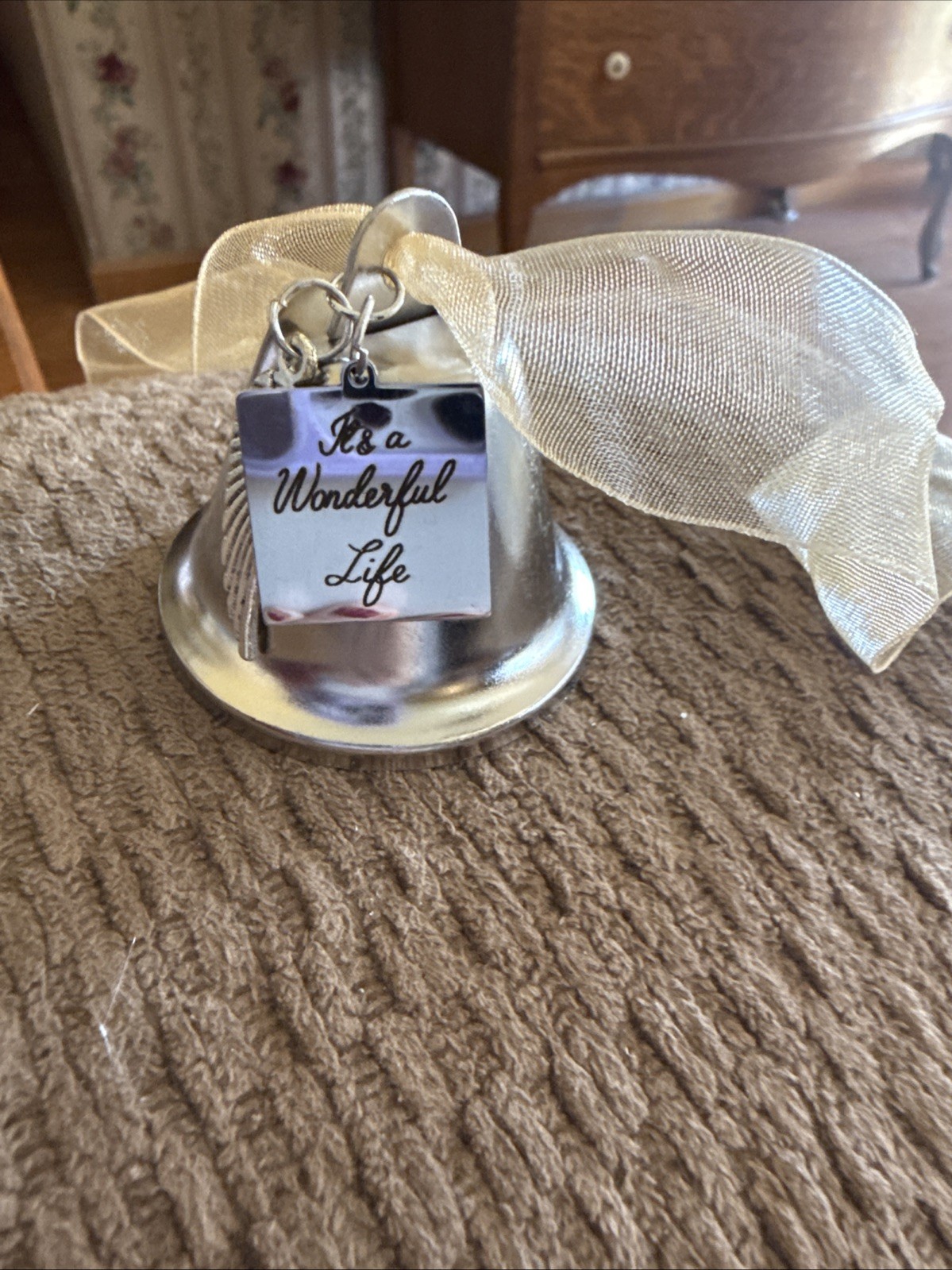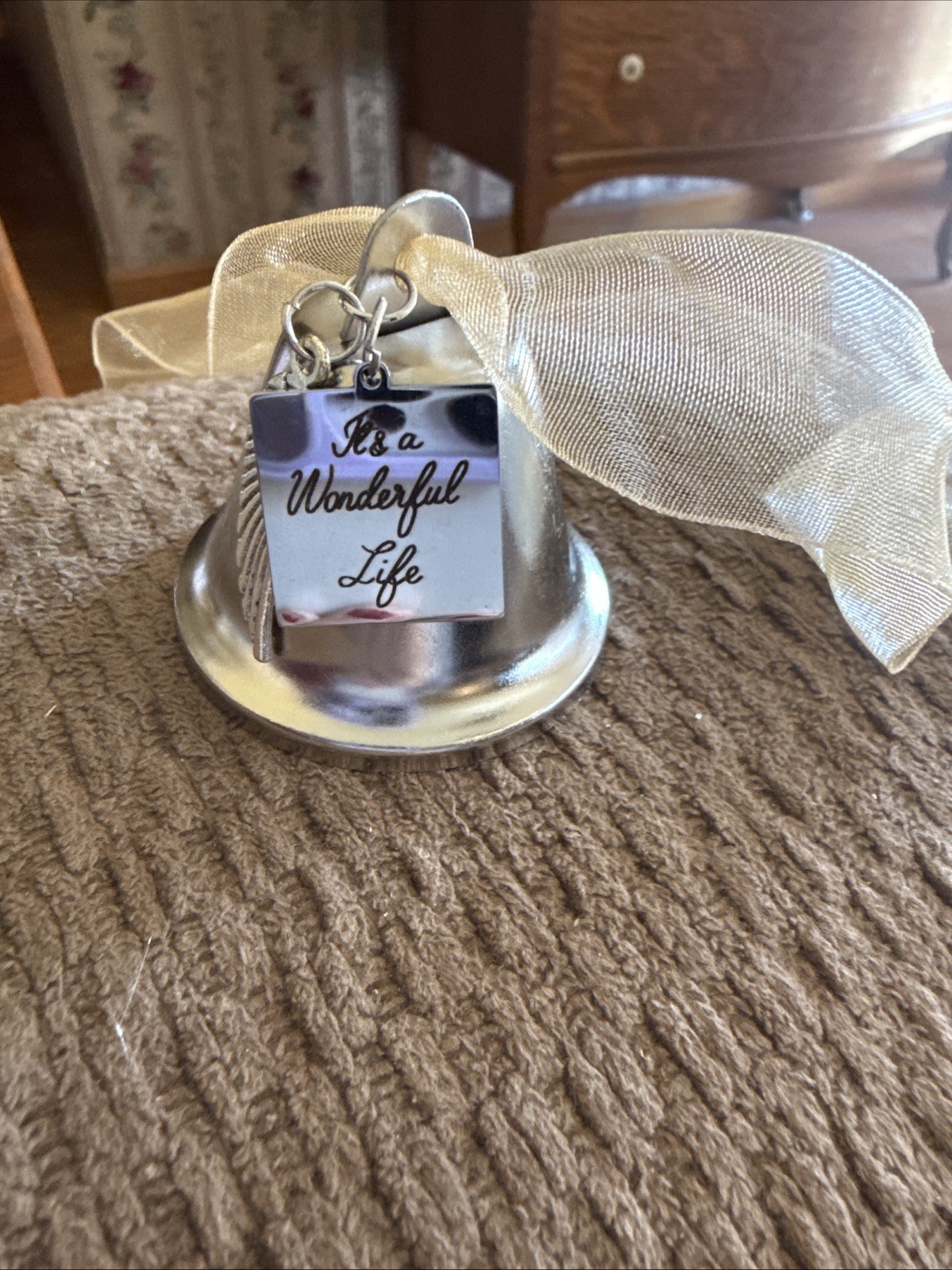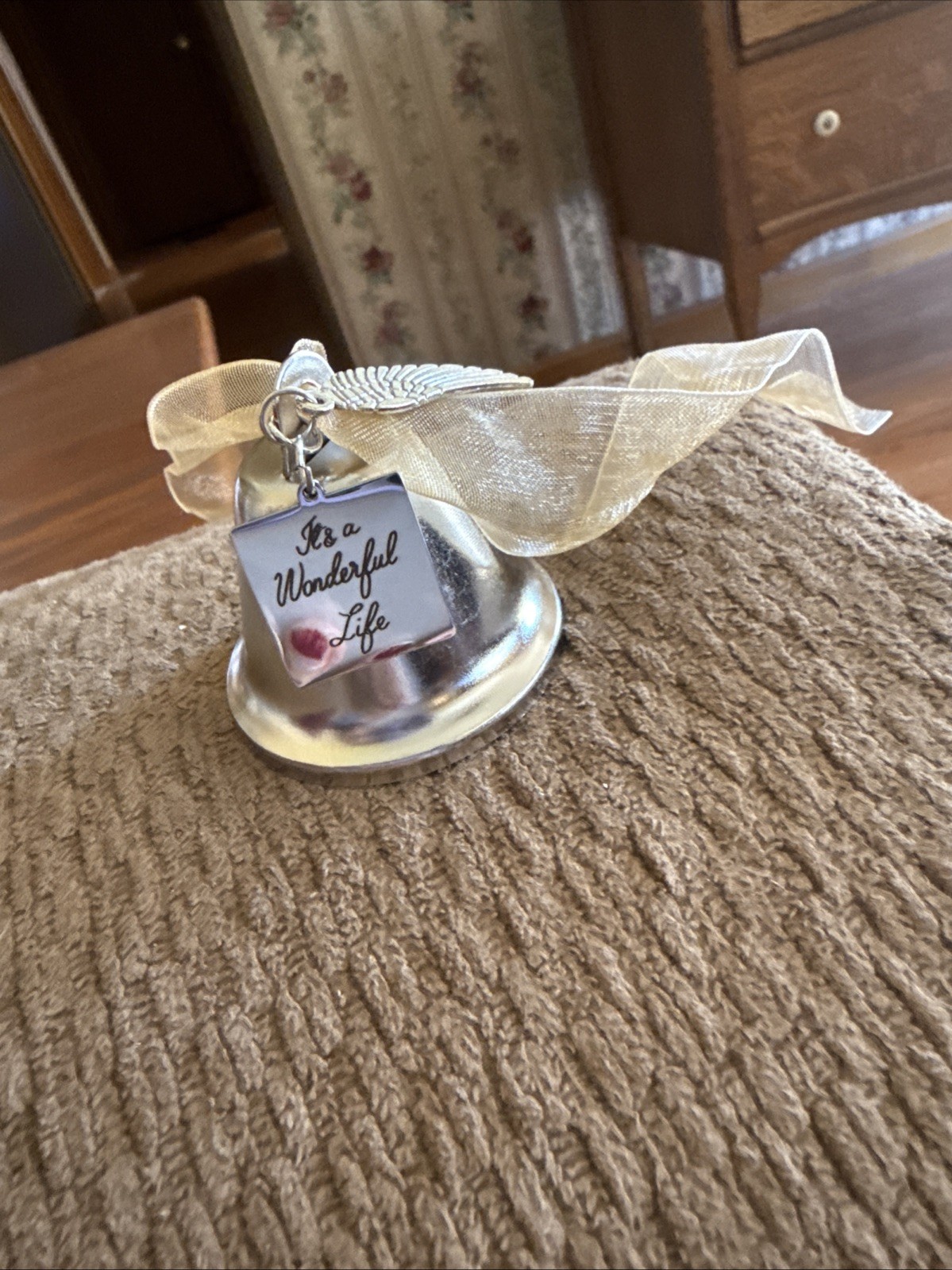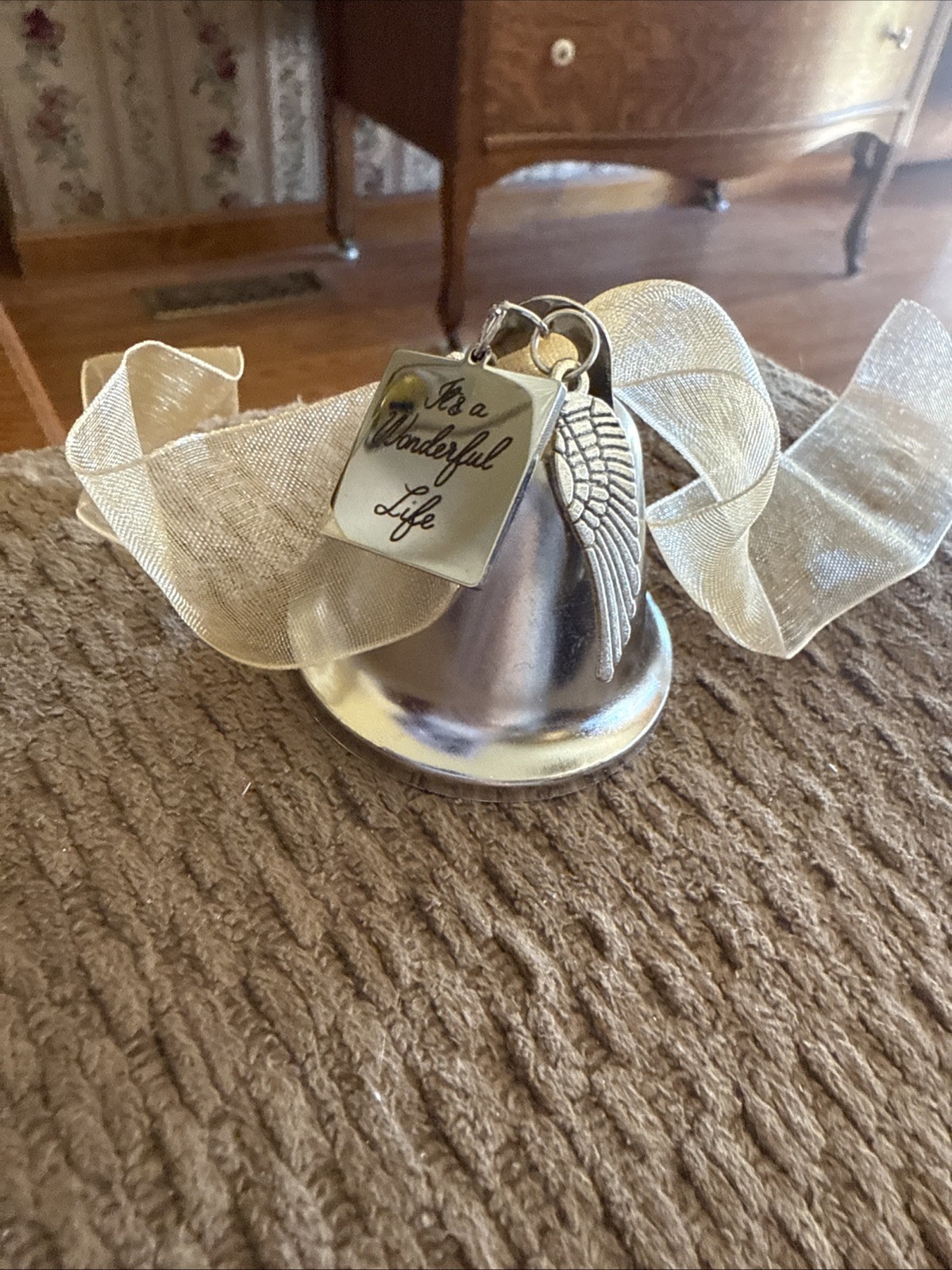• Metal Christmas Bell W/Inscription It s A Wonderful Life /Angel Wings Ornament