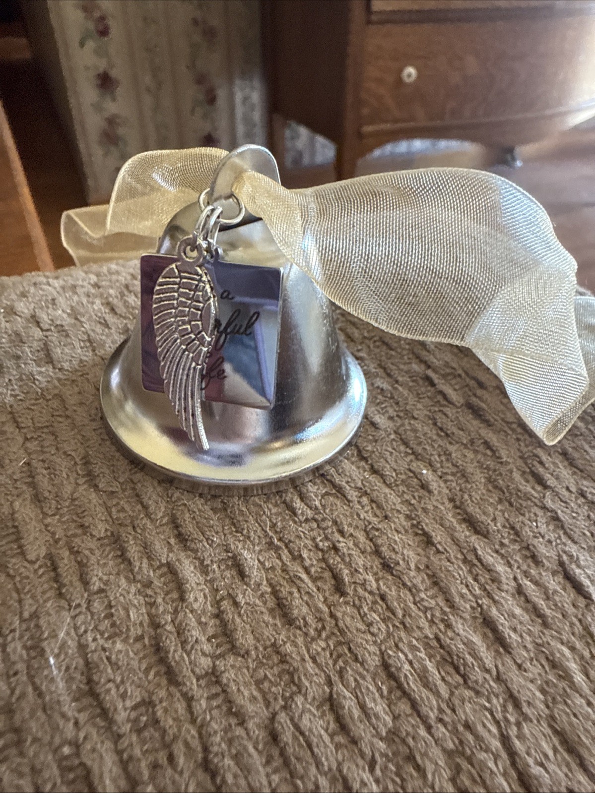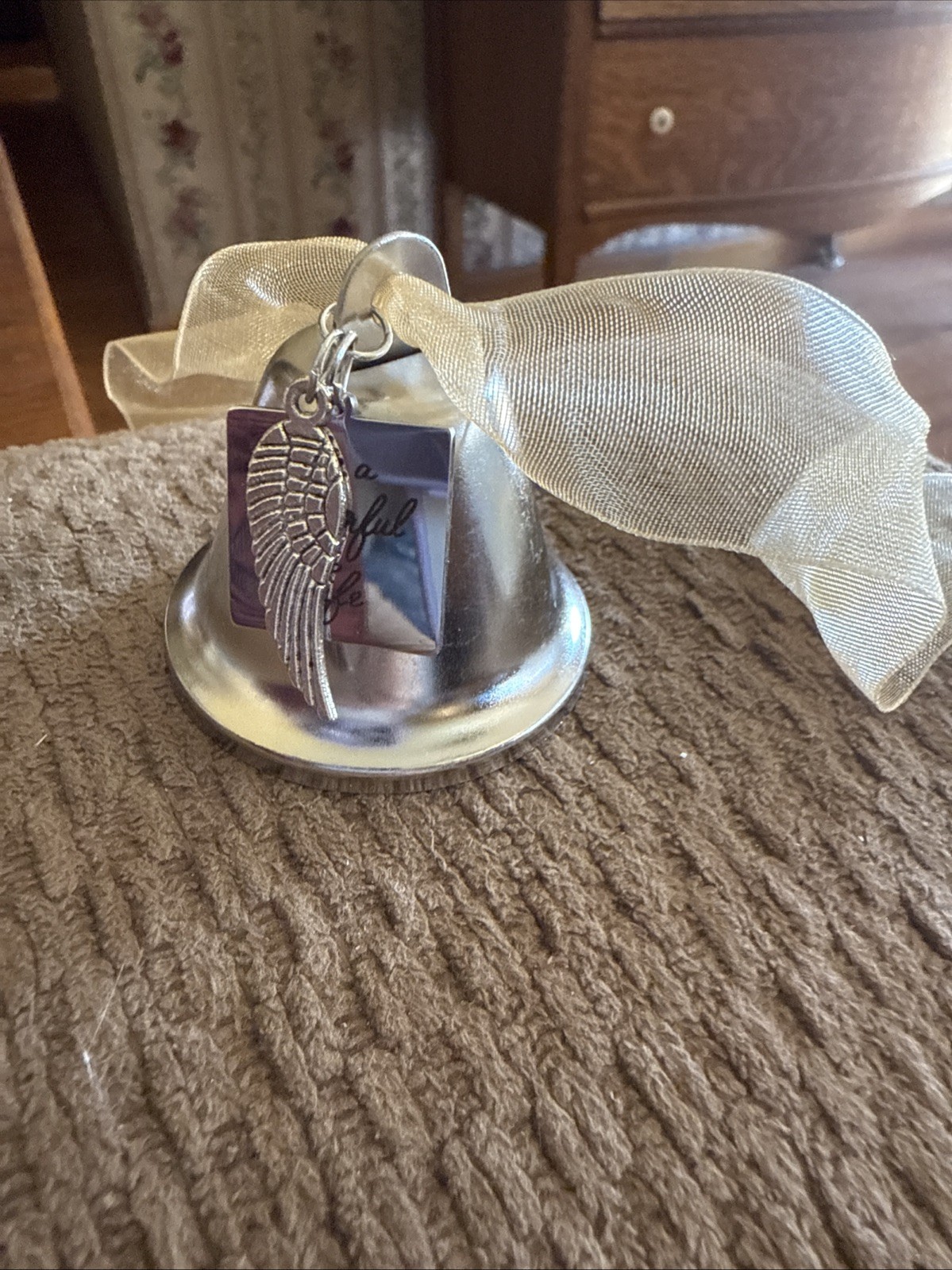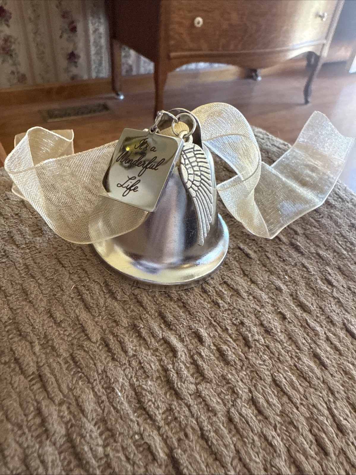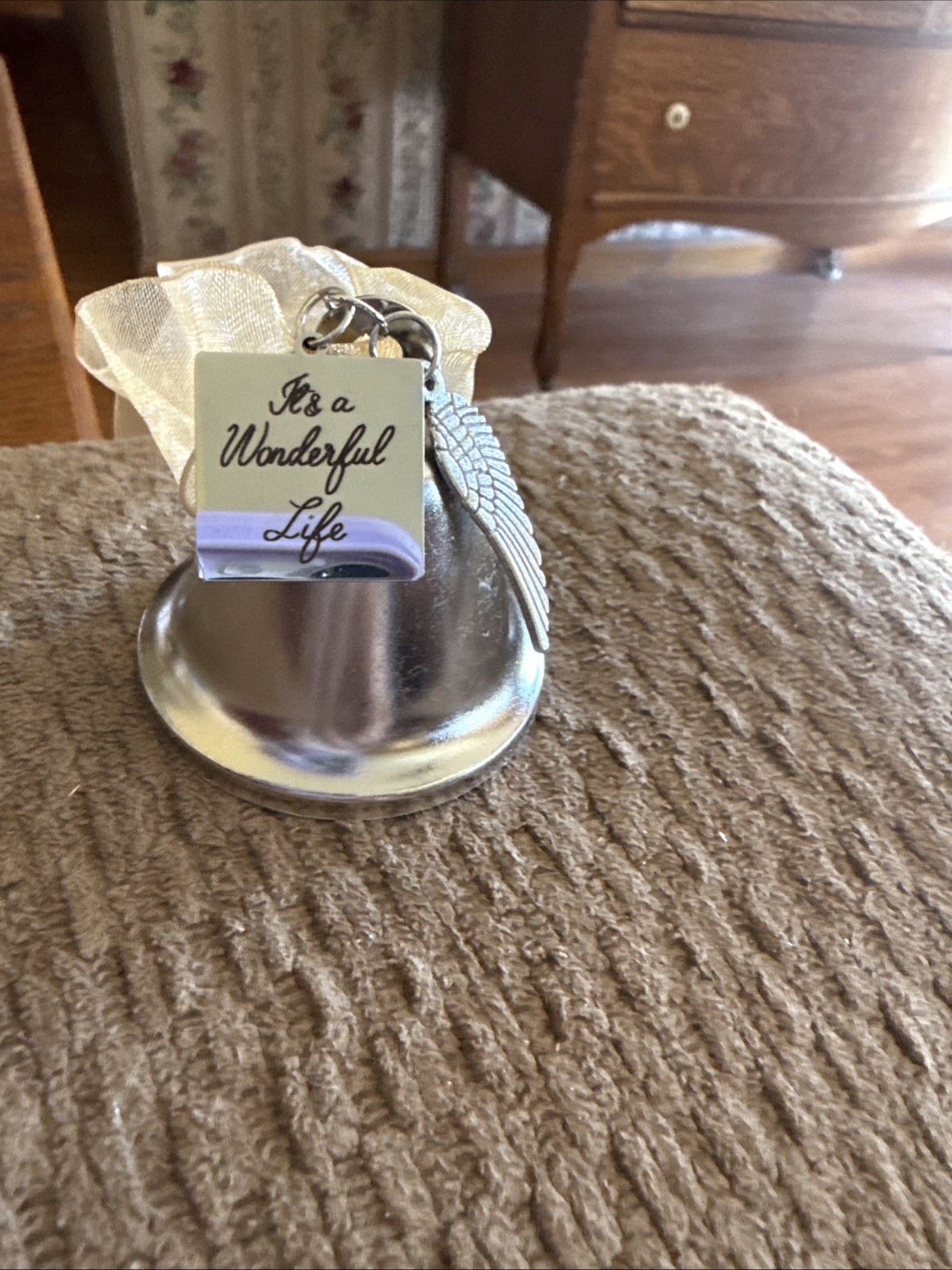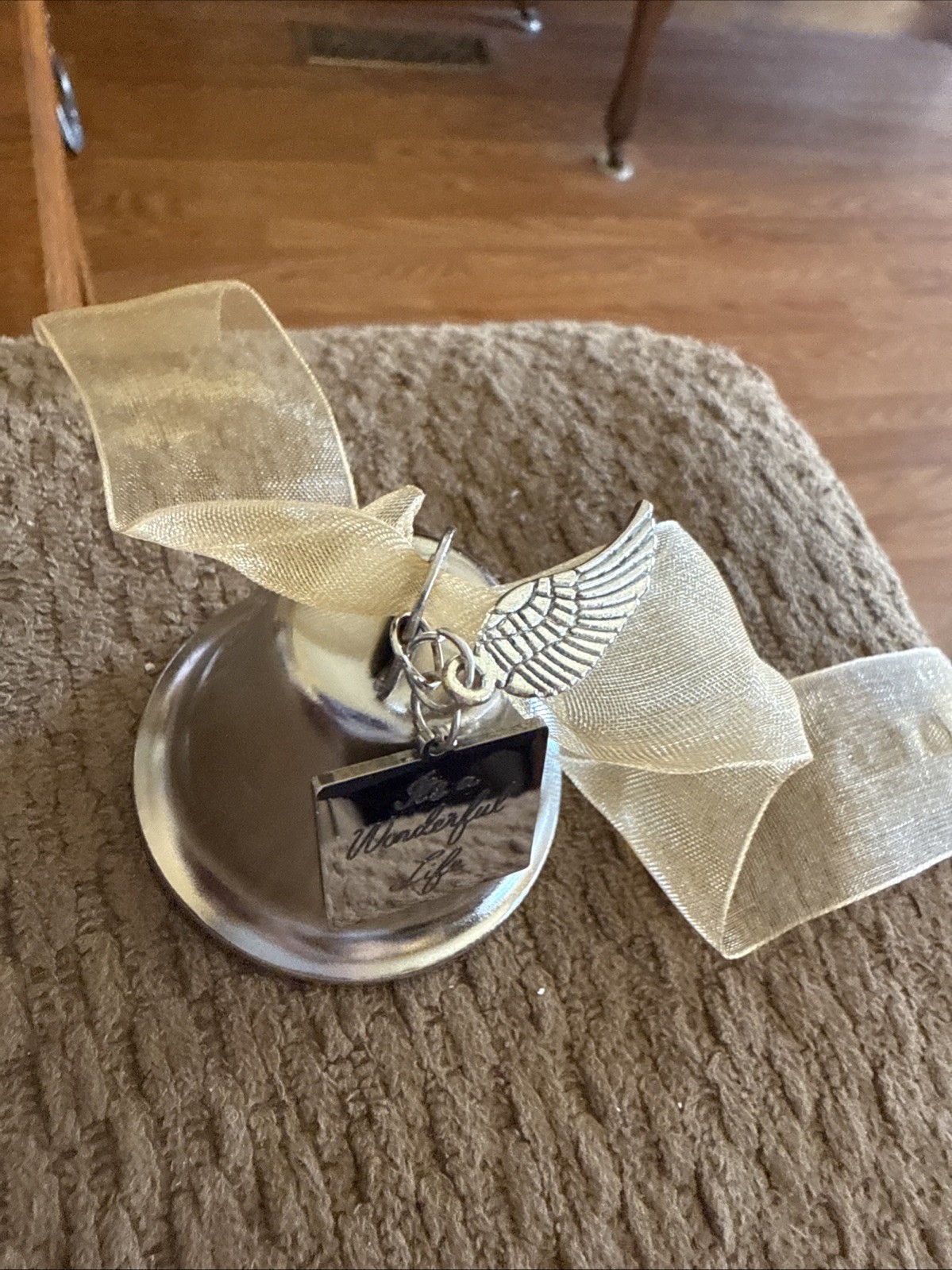 как выглядит Metal Christmas Bell W/Inscription It s A Wonderful Life /Angel Wings Ornament фото